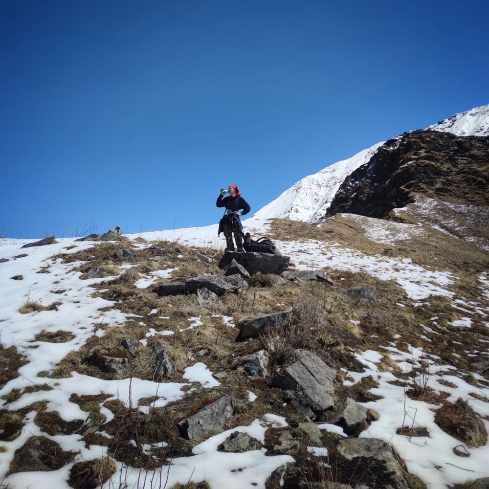 Вообще план был дальше еще раз попробовать зайти на Долпо, но увы, планы не сложились и в этот раз. Уже в районе чуть выше 4000 метров, пока мы бродили возле Фалгуне - снегу местами было по колено. Перевал на Долпо же в районе 4500, с теневой стороны. Все майкотские сказали - нам тоже туда надо, пора собирать кордицепс. В последней кхарке под перевалом сидит у нас дозор, и каждый день телеграфигует - снег еще не сошел, сидите дома. Предлагали сидеть у них в деревне, но хз сколько... Ксю пора на работу, и так, видел бы ее работодатель откуда она его миллионами ворочает: