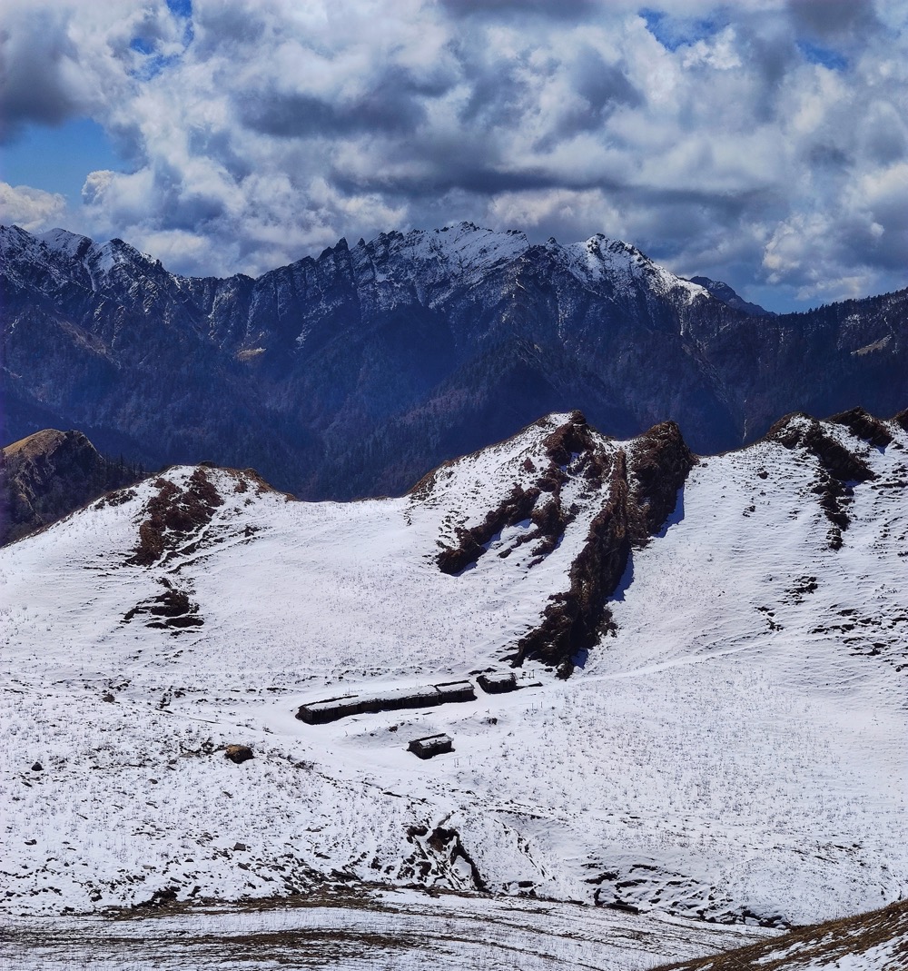 Перевал между Гурджакани и Гурджагатом чуть-чуть в снегу. На перевале есть кхарки, вода. В общем абсолютно годное место: