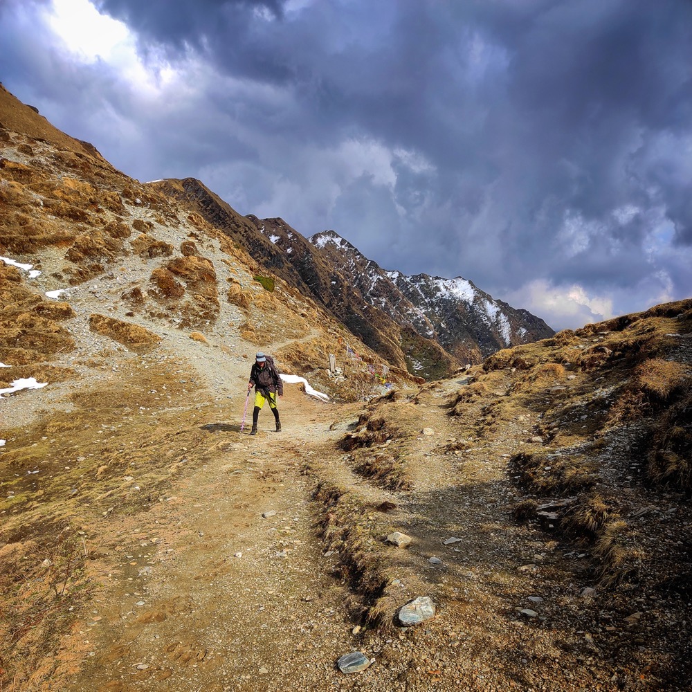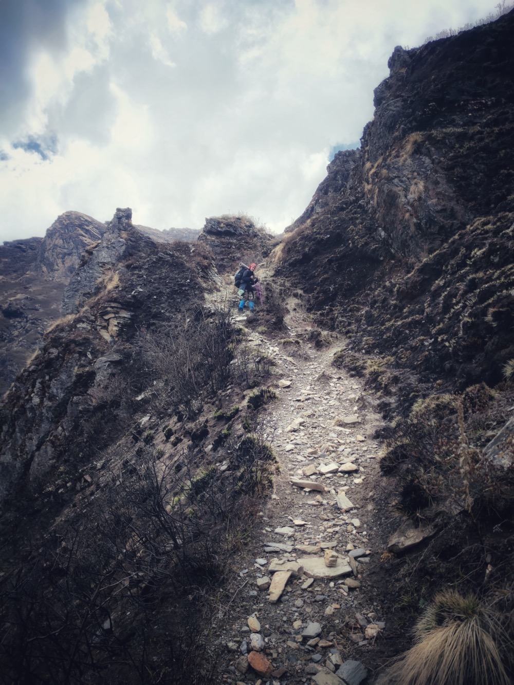 В общем мы так заигрались в "а мы пойдем другим путем", но на перевал Phalgune, на который все обычно поднимаются мы откуда-то спустились: