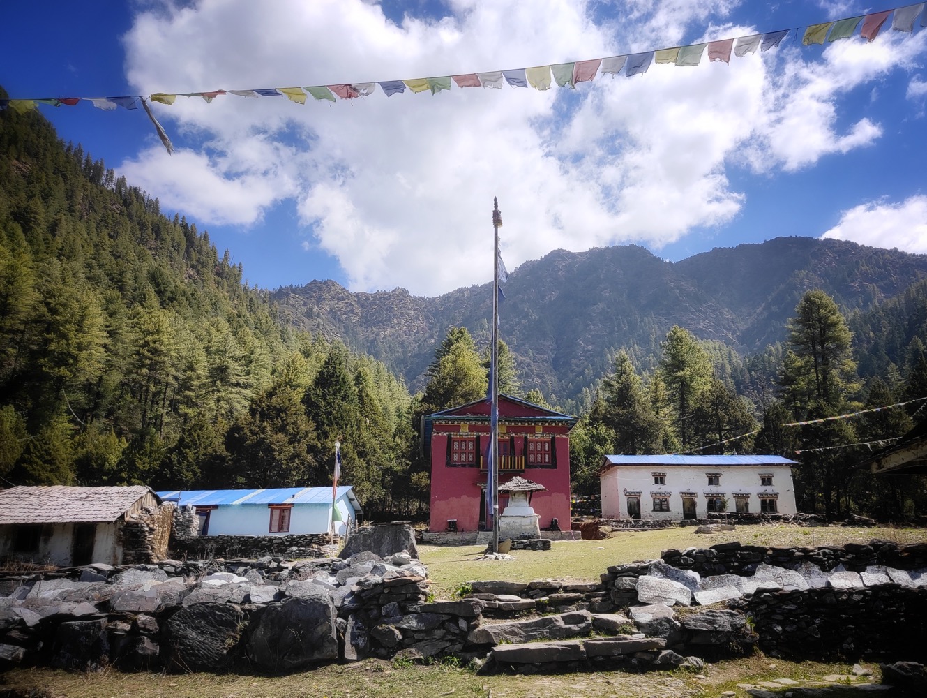 Дальше была ночевка в странном месте с названием Тхакур. Не надо, если что, повторять наших ошибок и там оставаться. Стремное место, а если немного пройти за хутор - будут вполне годные полянки для палатки с водой. В общем, несмотря на то, что люди живут там постоянно они не осилили себе построить туалет. Ладно, если это временная летняя стоянка. Но дом вполне зимний, а вот срать извините - просто за околицей. Как-то не по феншую совсем, даже непальскому.