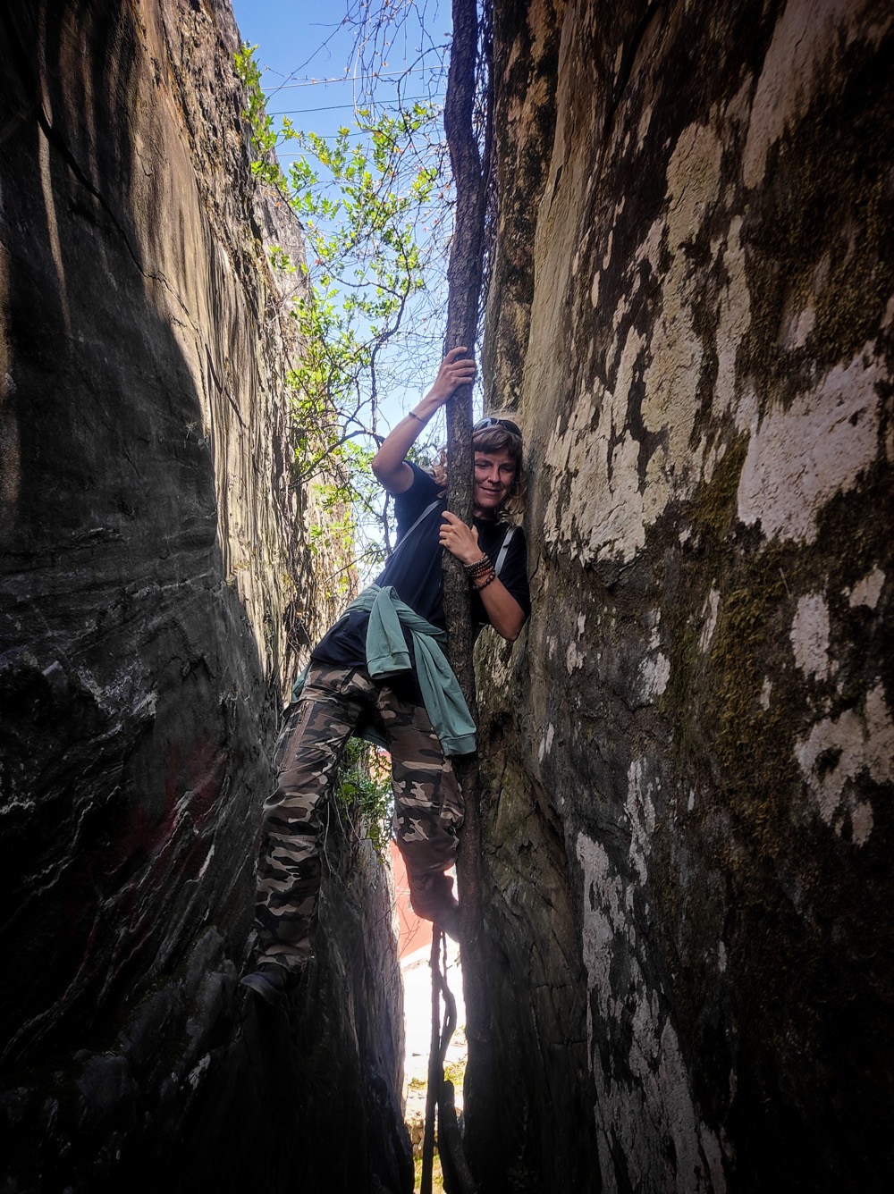 И на том Таши нас распустил в свободное плавание. Мы все тут же, как нелюбители больших тусовок (группа у нас была 13 человек) разбрелись по разным направлениям. Я полезла вверх. Увидела летницу и полезла. Местами от нее были рожки до ножки, но в целом подняться/залезть можно: