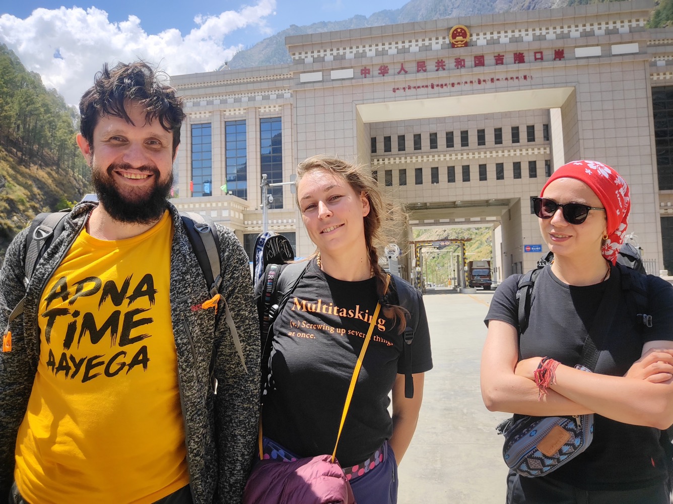В Китай (или только Тибет?) нельзя ввозить изделия из кожи. В связи с этим ребятам не разрешили взять с собой шаманский бубен, в который они планировали постучать в знаковых местах. Пришлось оставить в кафешке на непальской стороне и забрать на обратном пути.
