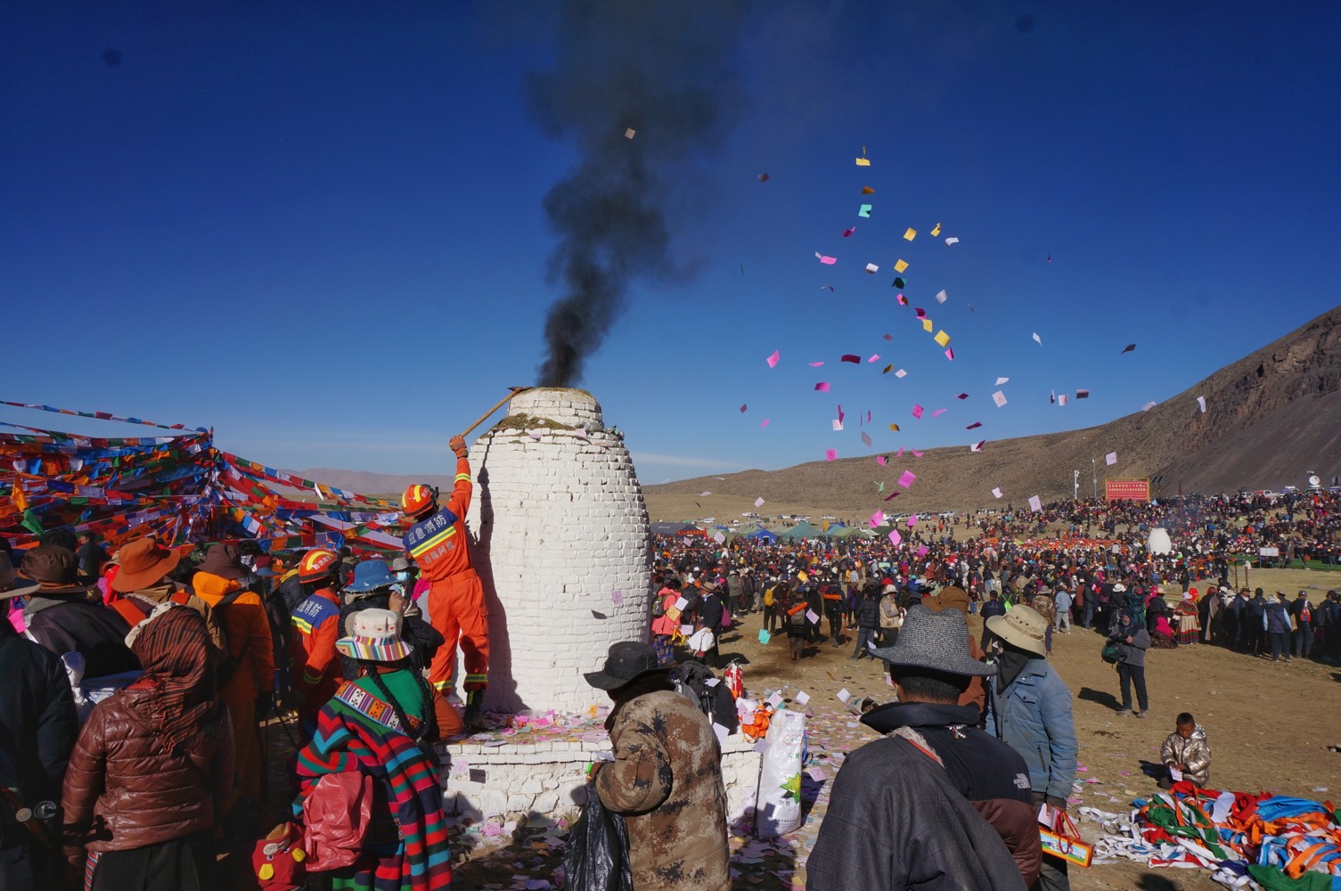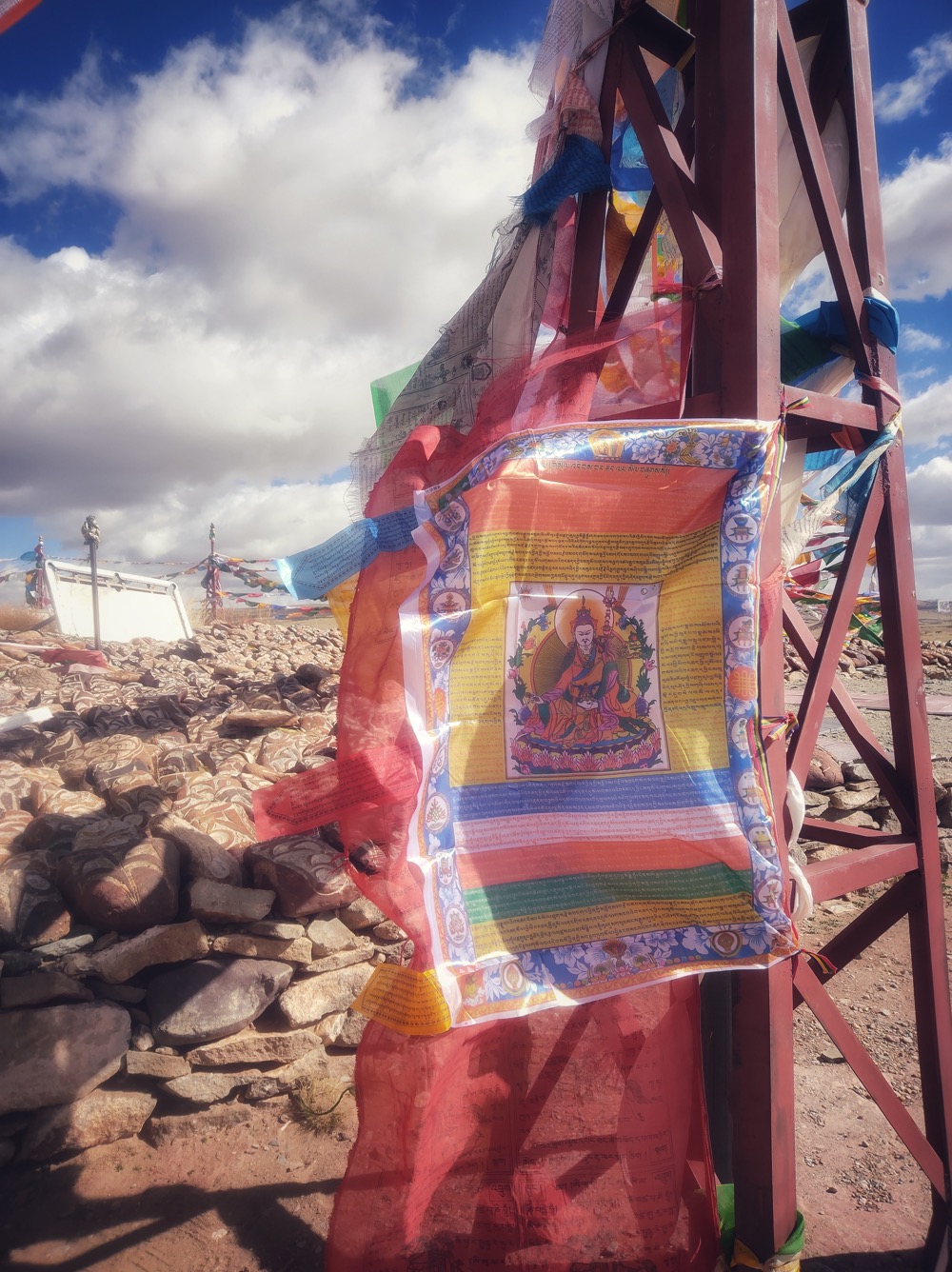 За несколько дней за СагаДавы начинаются приготовления: тибетцы приносят лунгта в несчетных количествах, оборачивают ими длиннющий шест, а когда шесту уже достаточно - развешивают из просто где можно вокруг: