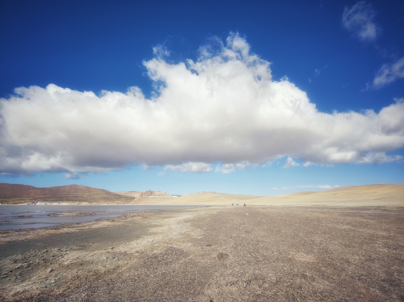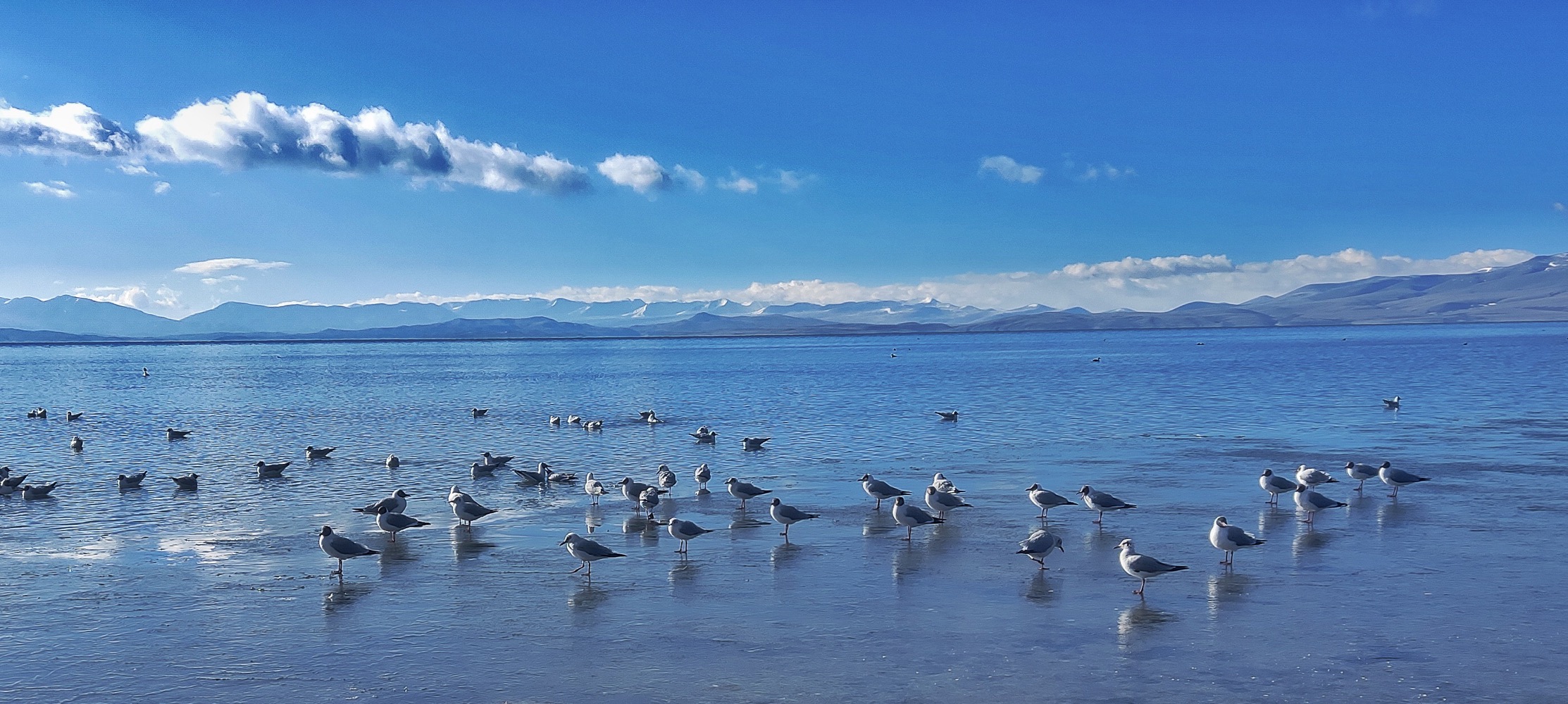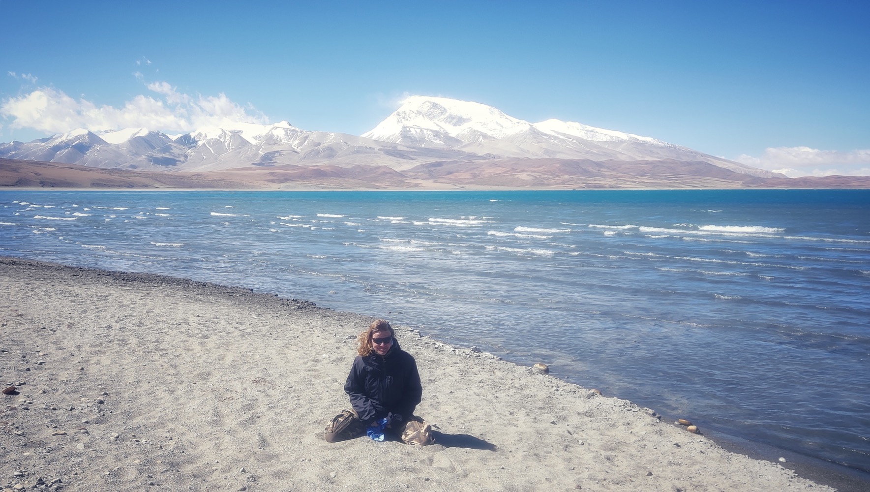 На самом деле, первое место на нашем пути, откуда можно было увидеть Кайлаш было еше вчера, но... было только место, Кайлаш было не видать. На нем все останавливались, делали простирания, кормили чаек. Но по нормальному увидели его только сегодня.