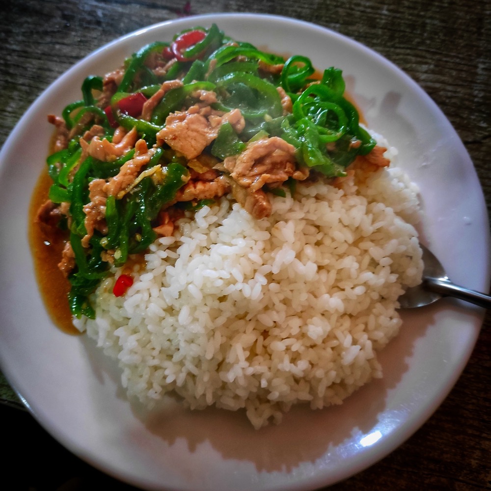 Поесть в Китае сложно. В ресторанах, конечно с этим попроще, там есть картинки - можно просто ткнуть пальцем в понравившуюся. Я же решила опробовать что-то типа локалки и... бля. Варианты через переводчик: дайте какой-нибудь еды, дайте что-нибудь вкусное, еда с мясом и еще несколько вариаций вызывали просто кучу дополнительных вопросов, естественно на китайском. То есть уловить в речи что-то похожее на название блюда и просто его повторить у меня не получилось, ибо вопросы были уж очень сильно развернуты. На помощь пришел более-менее англоговорящий китаец и с ним мы осилили заказать вот такое. Вкусно, да. Но сложно.