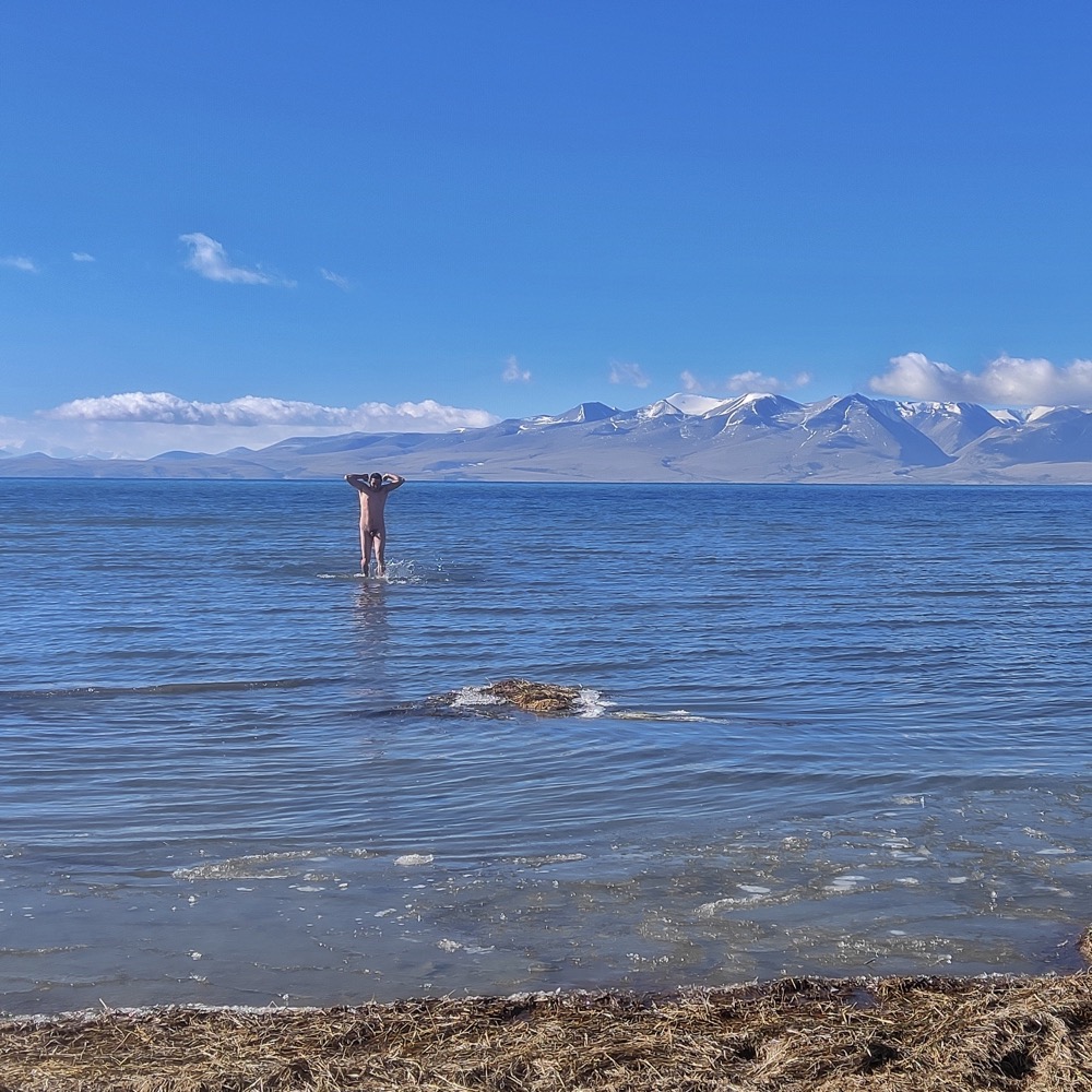 В программе у нас так и было написано: holy bath. И, для меня было удивлением, потом узнать, что какие-то гиды не разрешают купаться в Маносароваре и вообще это как бэ нельзя. У нас с этим по утру не возникло никаких проблем. Единственное, что мы отошли от деревни достаточно далеко, но причины этого были не в том, что бы от кого-то прятались, а просто искали более комфортный заход в воду, где хотябы не надо было проламывать собою лед. Желающие омовение совершили в полной мере: