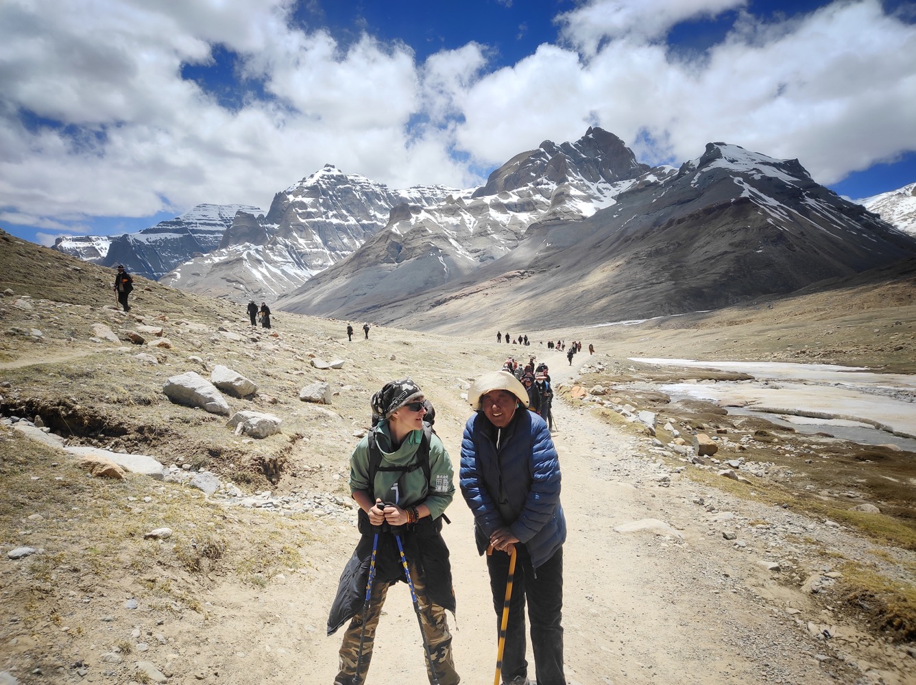 На контрасте с ней, девочка с Украины была бледна, но шла. Попросила у меня мельдоний, но толи уже было слишком поздно, толи у нее какая-то личная непереносимость, но в общем лучше ей не стало. После завтрака (через час пути от гестика была кафешка, где как раз кушали все тибетцы) лучше ей не стало, даже губы посинели. Я махнула Таши в ее сторону - типа посмотри что как. Да. И вот тут еще один момент, за который я, конечно Таши зауважала. Конено он спросил не хочет ли Н. пойти вниз. Ноо после того, как она сказала, что не для того сюда приехала, что не пройти, Таши взял ее рюкзак и практически под руку, вместе с гидом из соседней группы они провели ее через перевал. Любой бы другой гид, как ме кажется, сказал бы - да нафиг мне эти проблемы, она помрет - меня посадят. А этот такой - ну окей, человек хочет совершить паломничесто, кто я такой, чтобы препятствовать, помогу чем могу.