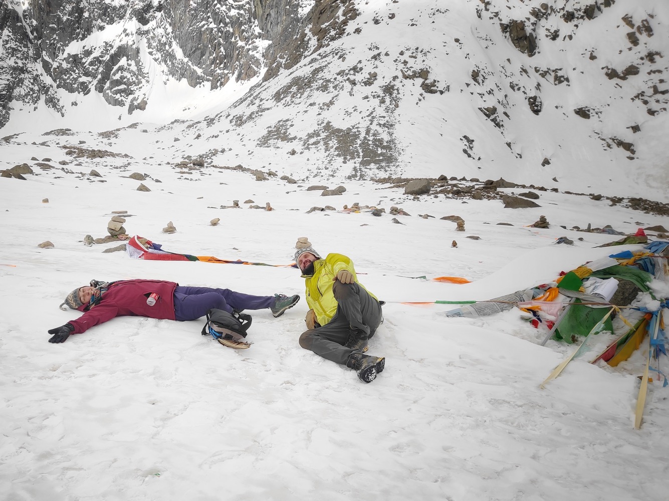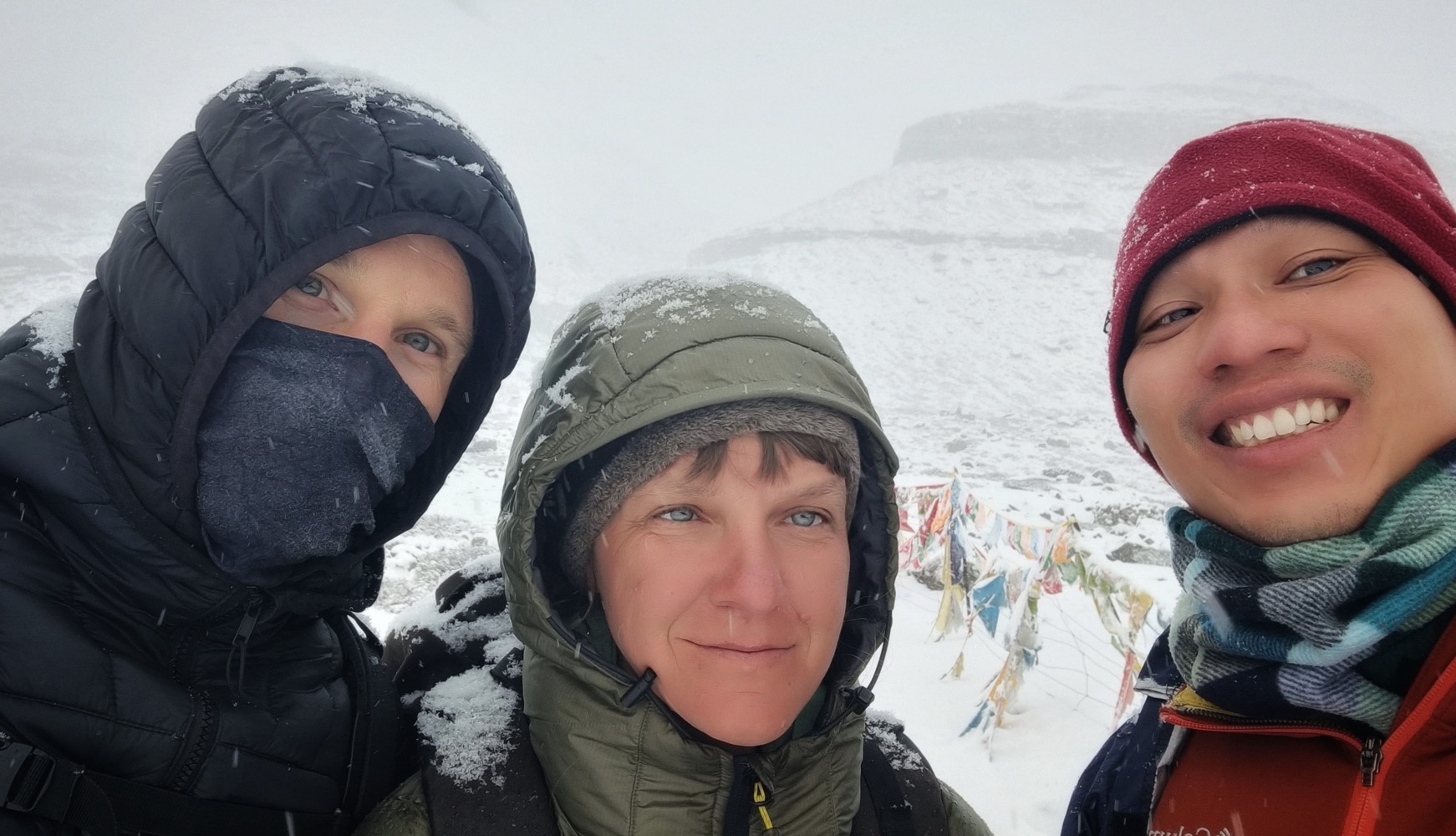 У одного из ребят из нашей группы были какие-то модные часы, которые измеряли уровень сатурации кислорода. Все естессно в это поигрались (у кого еще были силы). У меня на мельдонии и акклимухе было 87%, у всех остальных - меньше 80%. А вот у тибетца Таши - 97%.