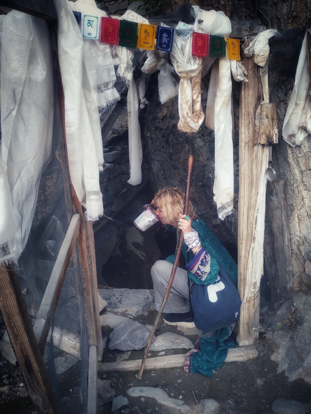 С Умлинга спустились в Демчог. По слухам там были довольно грязные, но все же горячие источники. Так и есть, но шел 4й день без горячей воды, поэтому я была на все согласная. Остальные предпочли все же прохладные горные речки. Еще в Демчоге, на этом краю света, если очень приличная кафешка, в которой был даже нормальный кофе. Удивительное рядом.