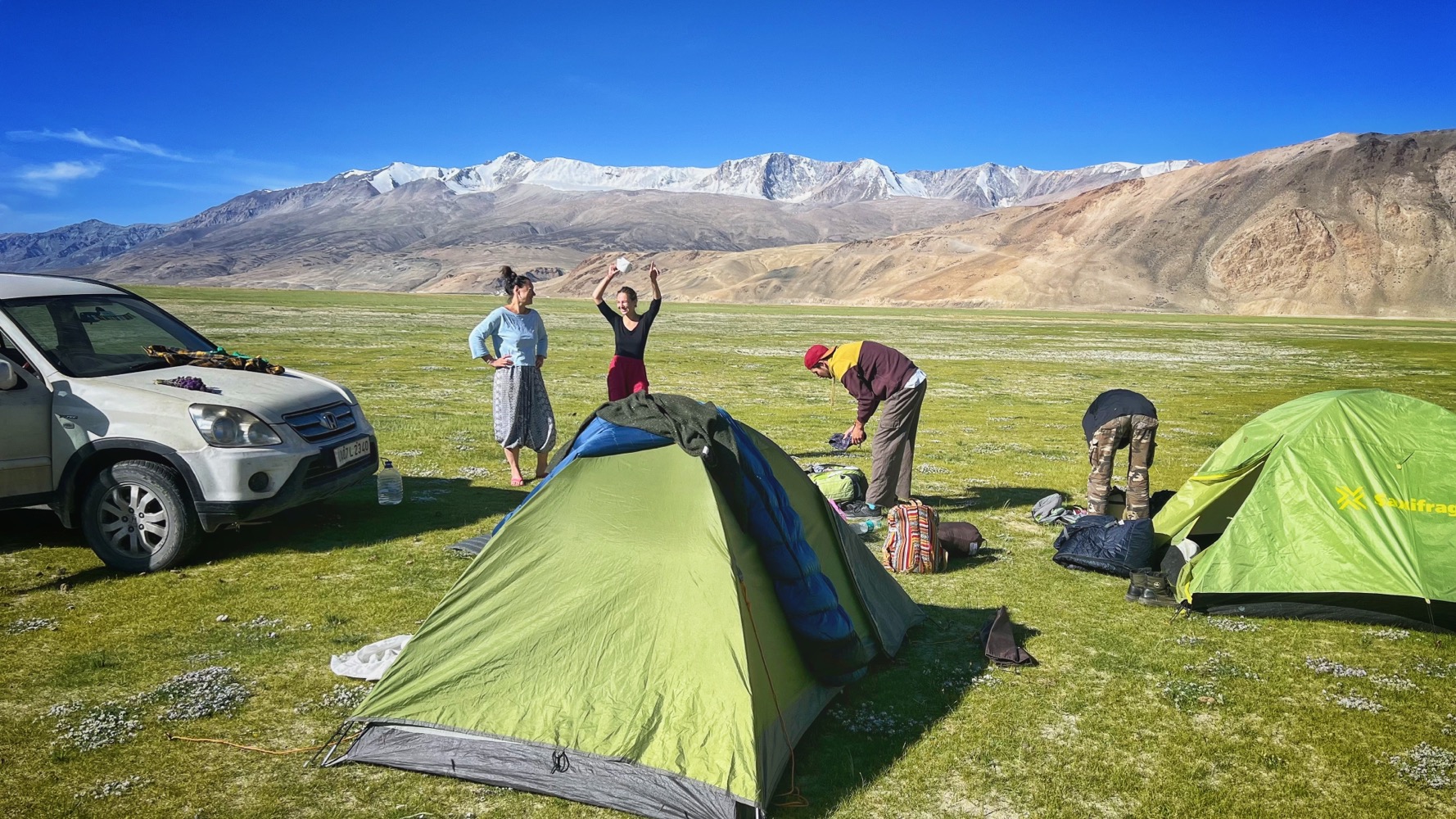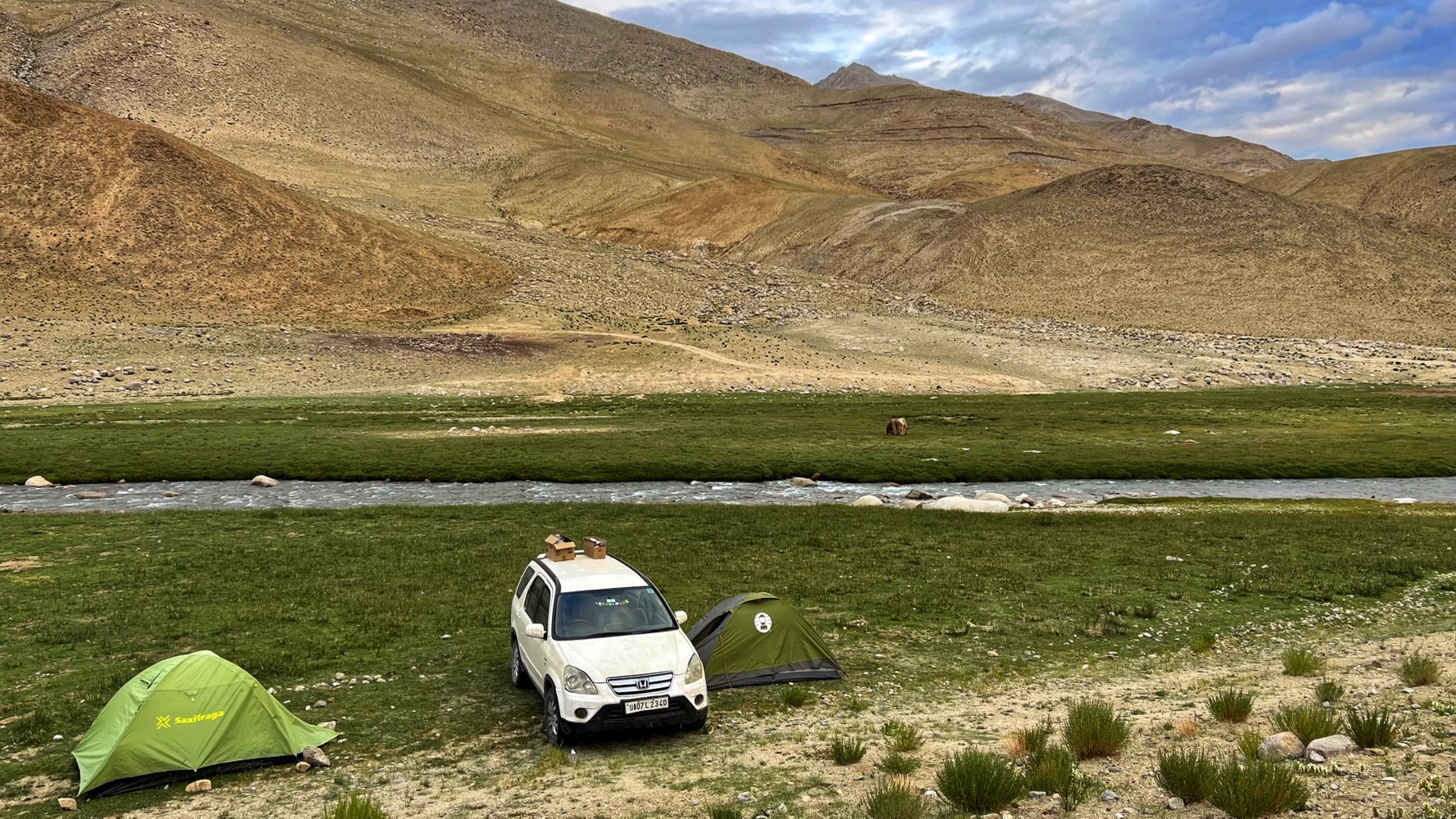 Осталось только найти ночлег. И тут оказалась подстава. Ночью и так не очень просто из окна машины разглядеть что-то пригодное, но Ладакх в целом почти весь годен для того, чтоб поставить пару палаток. А тут - то камни острые, то болото какое-то. В общем нашли место уже далеко за Дунгти, вроде все окей. Выдохнули, поставились и легли спать. Место: 33.308744, 78.883551
