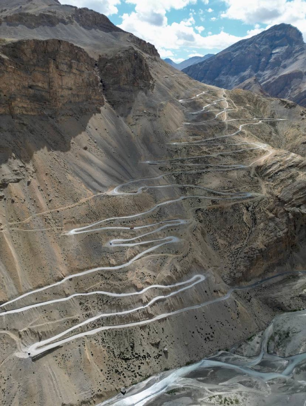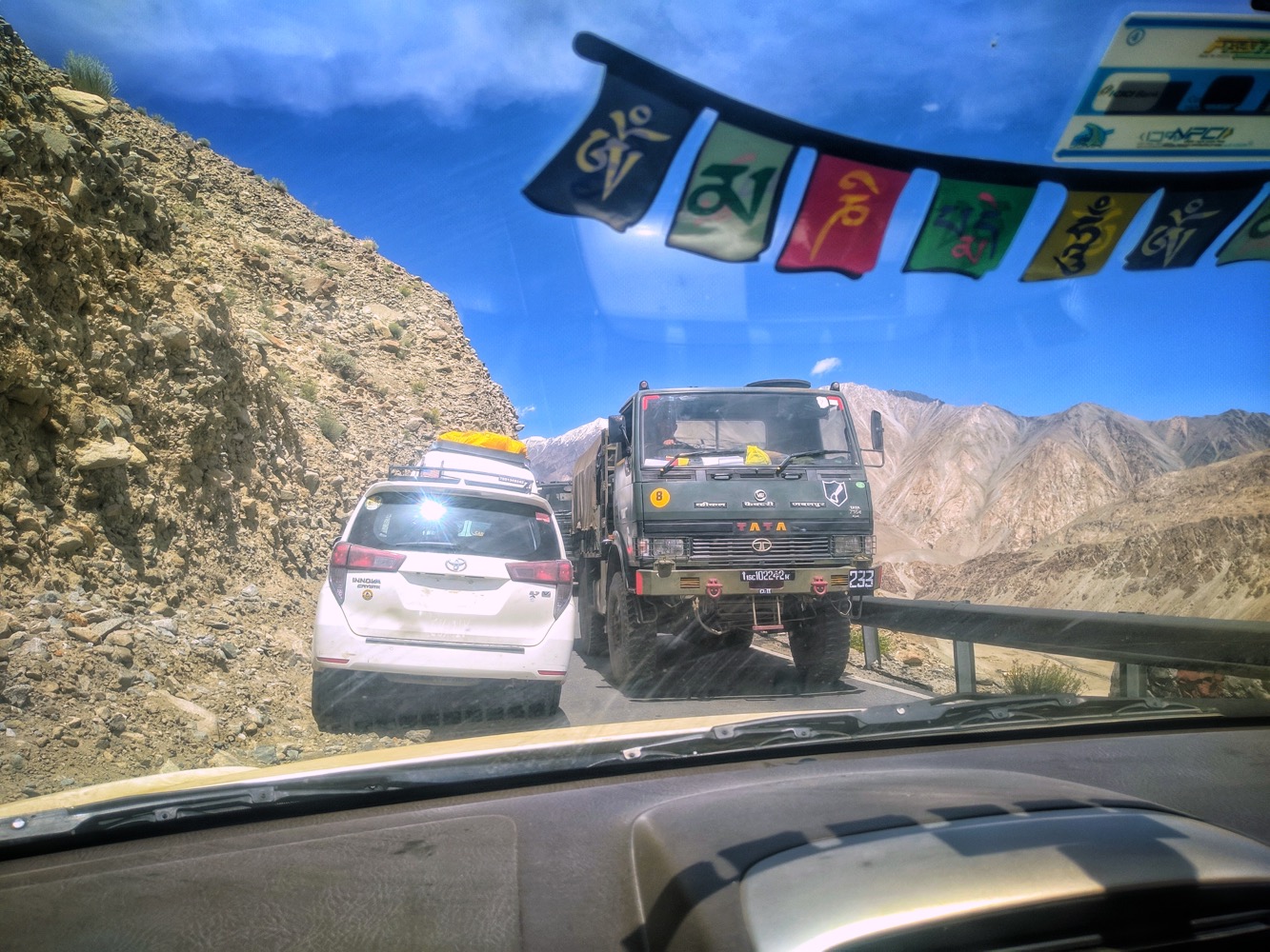 Вроде как говорят, что за Ханле есть чек-пост. И вроде как в пермитах написано, что УмлингЛа not allowed. Но все ездят и чек пост видит дай бог только половина из них. Мы не видели. Мы видели, что на карте по прямой до нашего предполагаемого места стоянки 11км. А гугл упорно говорит про... 90. Гугл был прав, кстати. Это был перевал PhotiLa. Хоть УмлингЛа и самый высокий и все едут туда именно за ним, реальное преодоление - это именно ФотиЛа. Аня преобрела десяток седых волос, особенно на спуске и +70 скилов к вождению. На фото только небольшая его часть: