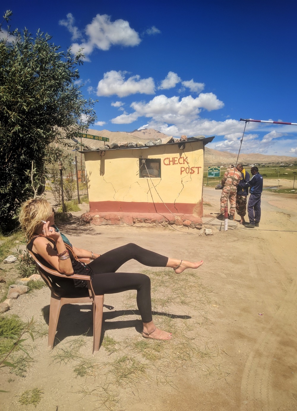 Фотка - чуть позже, на еще одном чек-посту. Не ну а что, ну куда ты нас уже развернешь? Назад? Так туда тоже уже нельзя. И вперед нельзя. Индийский мозг перегревается и решает, да хрен с ним, пусть уже уедут с глаз долой куда-нибудь: