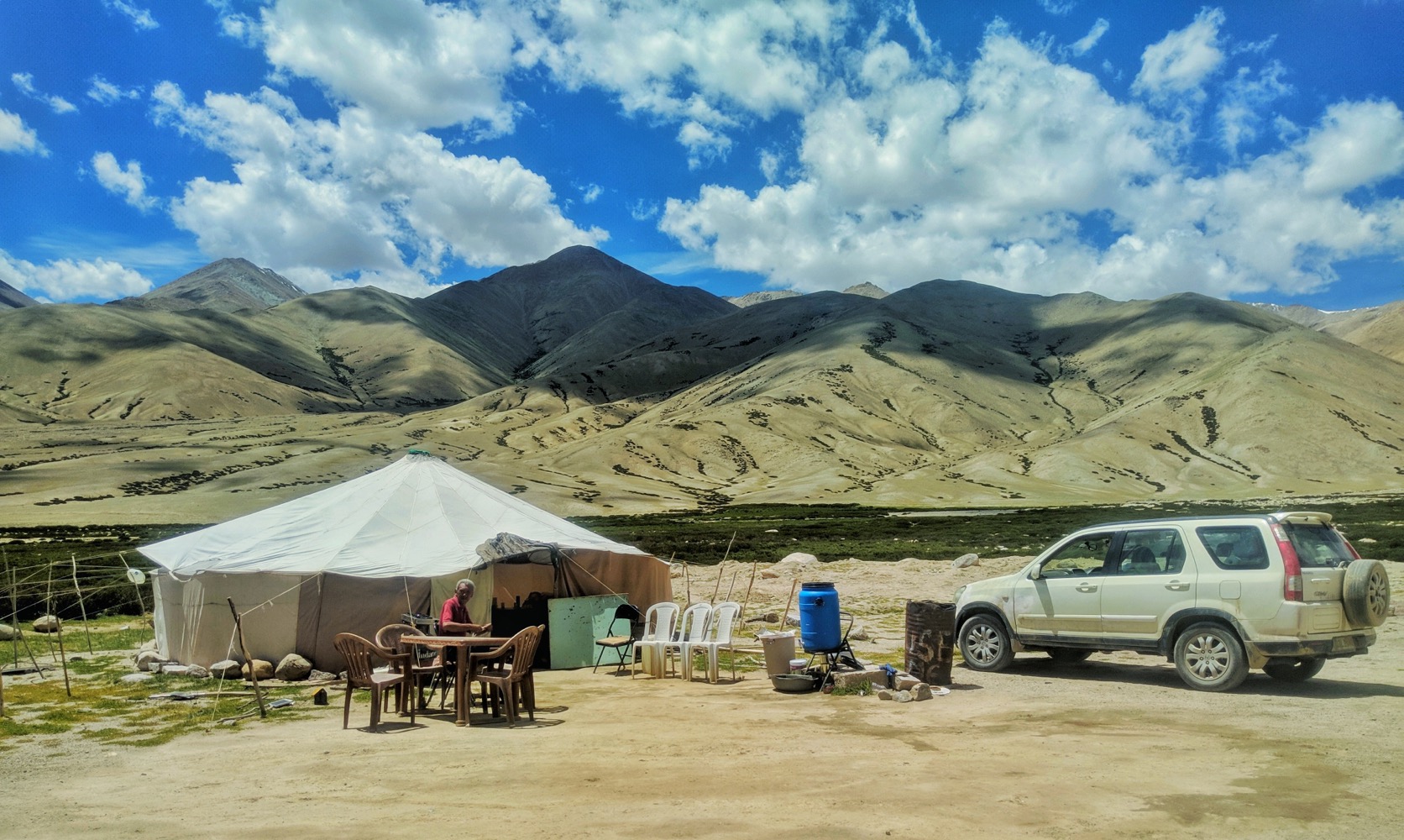 А дальше, через пару часов езды нашлось реальное чудо. Оно стояло посереди негде, на дороге по которой никто не ездит. Но у него был шикарнейший далбат, чай, омлет и вообще лакшери-шатер. Это было лучшее место и лучшая еда за все время! Не знаю стоит ли он на том же месте каждый год, но туда стои заглянуть однозначно. 33.353274, 78.839841: