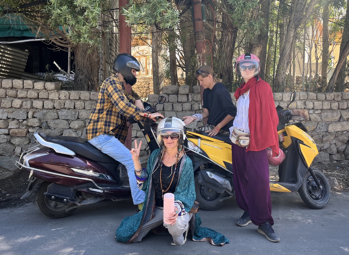 Ход дела был таким: Когда мы пришли забирать машину со стоянки в гестхаузе у нее оказались спущенными оба передних колеса. Совсем. Это раз. Номер два - за нее было что-то там не уплочено и соответственно хозяин геста без оплаты ее отдавать не хотел и его даже не было дома и вообще, приходите завтра. Пока все это решали перепиской с ребятами, что затащили эту тачку в Лех, с хозяином этой тачки в Гоа, с хозяином геста, который где-то-не-в-Лехе сняли на день скутера. Сгоняли в Хемиз: