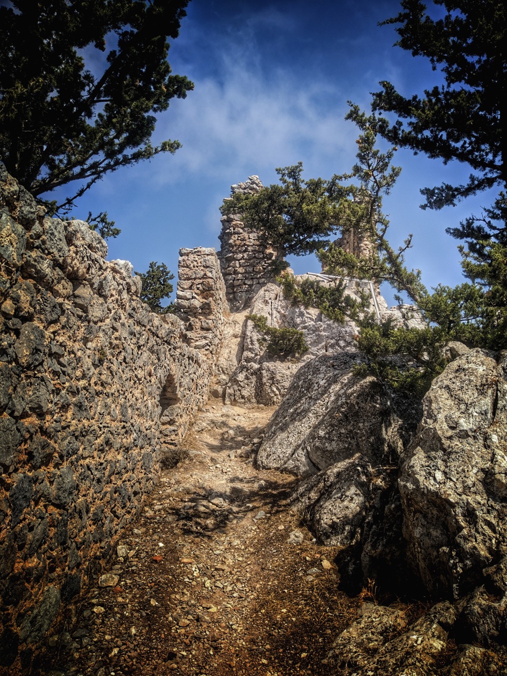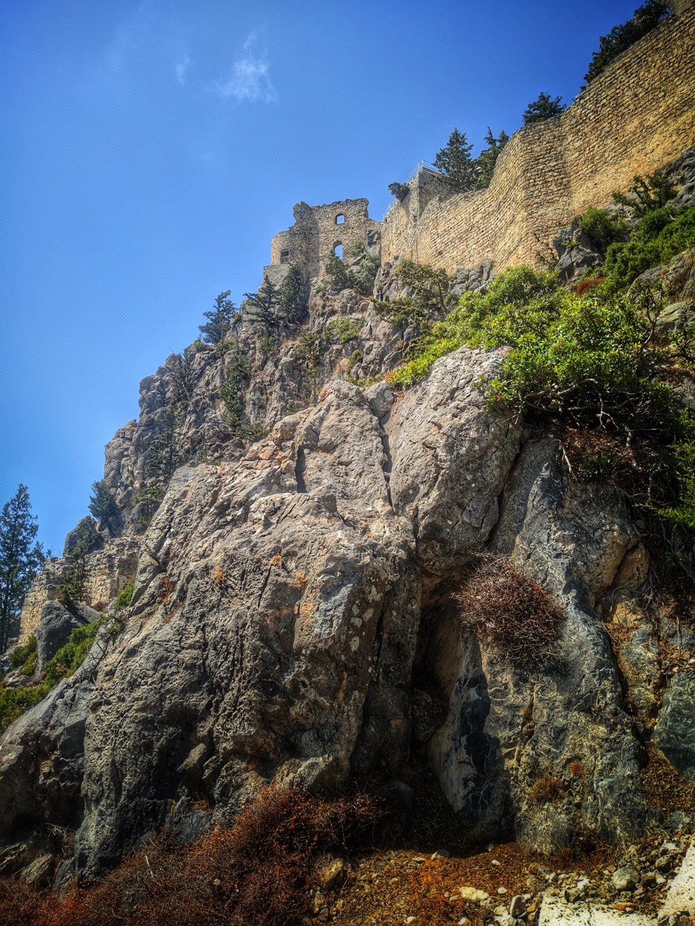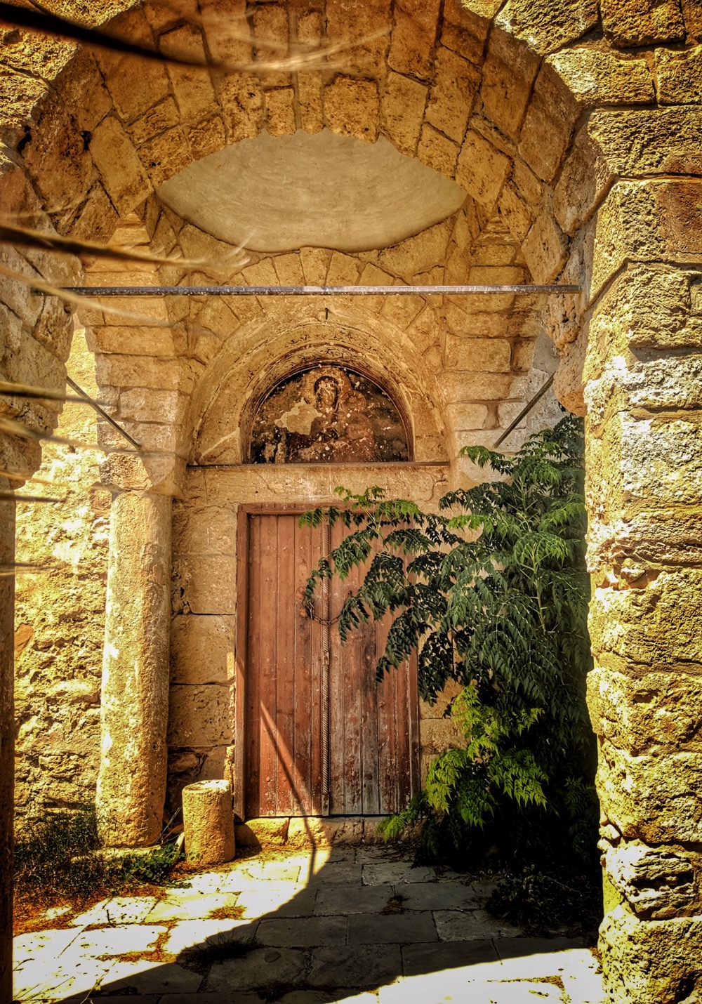 Вообще тут на СК интересная стадия заброшенности. Как бэ "двойная". Видно, что античность/средневековье, но реставрированное и ухоженное: перильца там, дорожки, ступеньки. Но после 1974 года никому до этого дела не было и за 50 лет оно подзаросло и снова обветшало...
