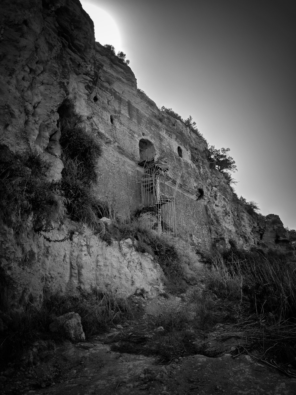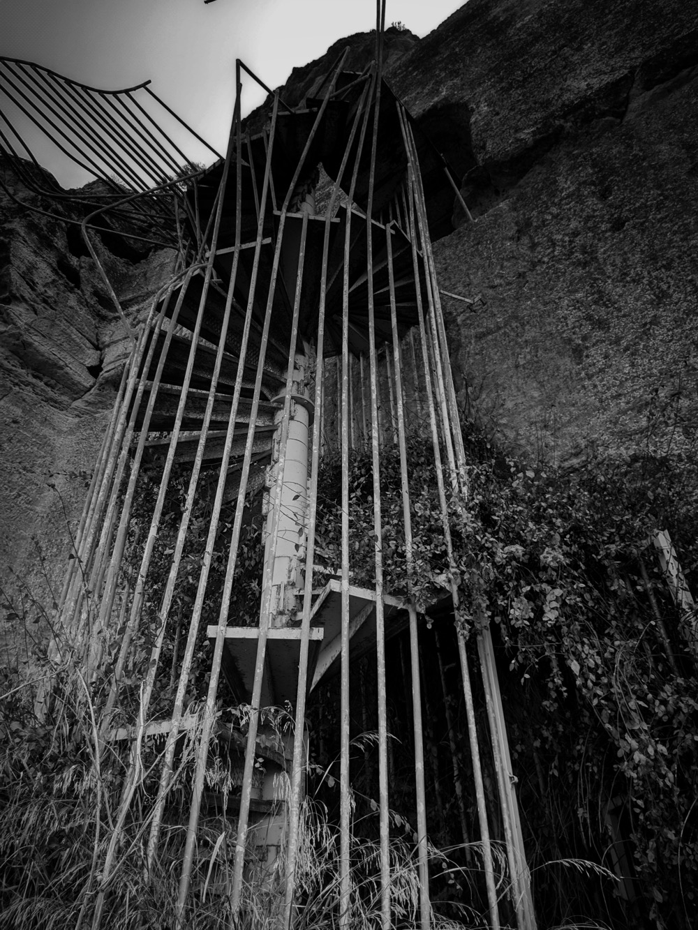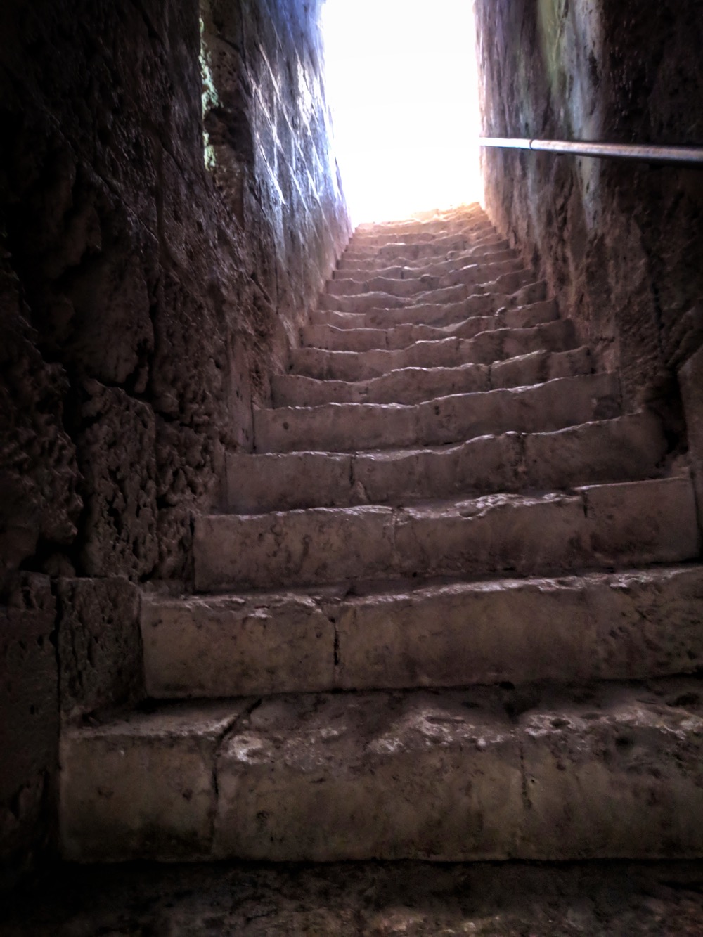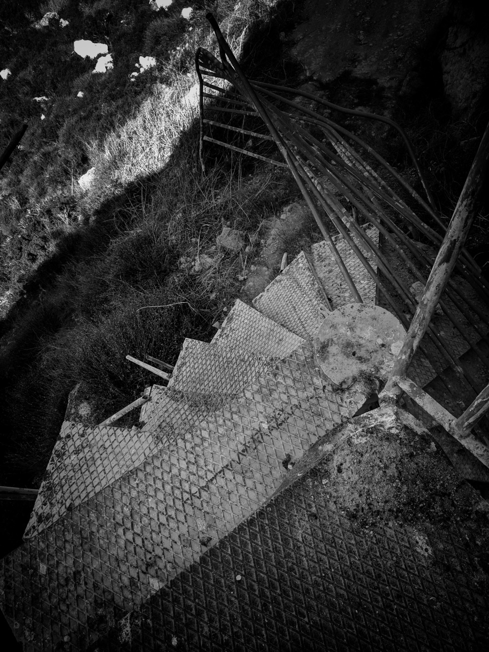 Вообще тут на СК интересная стадия заброшенности. Как бэ "двойная". Видно, что античность/средневековье, но реставрированное и ухоженное: перильца там, дорожки, ступеньки. Но после 1974 года никому до этого дела не было и за 50 лет оно подзаросло и снова обветшало...