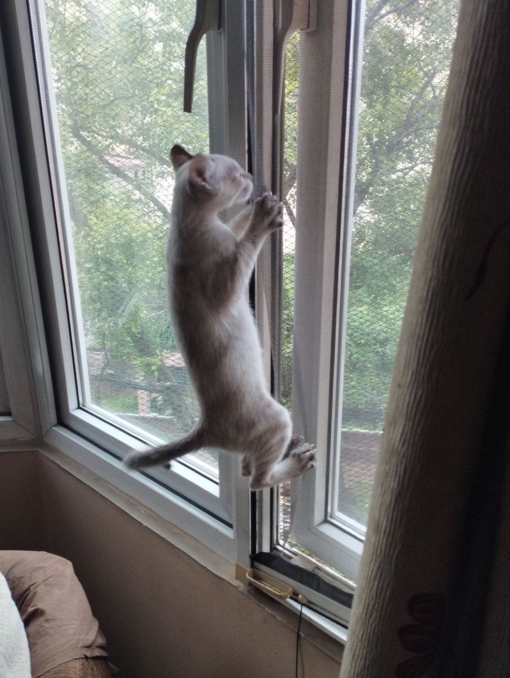 Через неделю после "выписки" он ещё разок умудрился отодвинуть москитку и скипнуть с четвертого этажа. Но без серьезных последствий. Найден садовником и возвращен на базу.