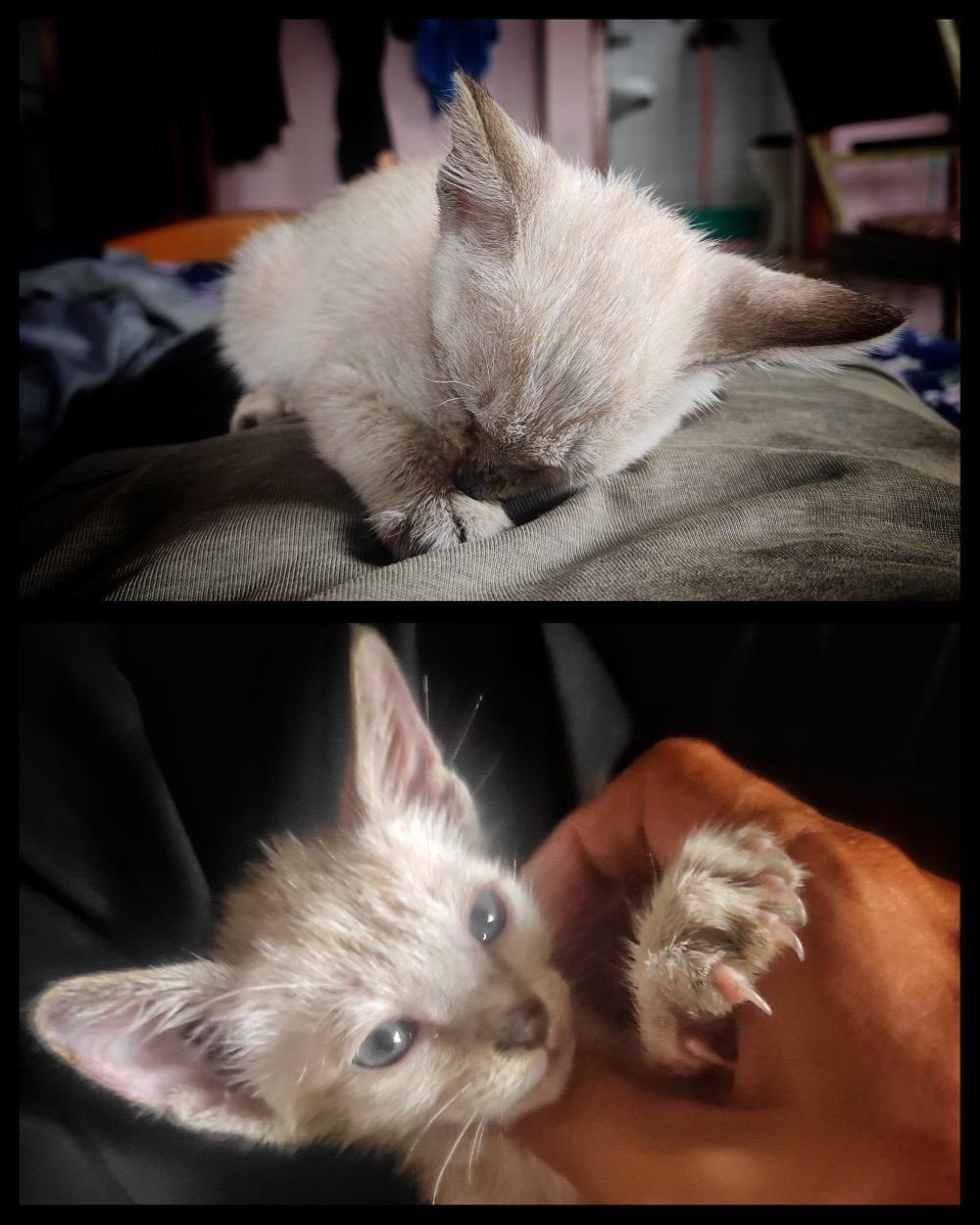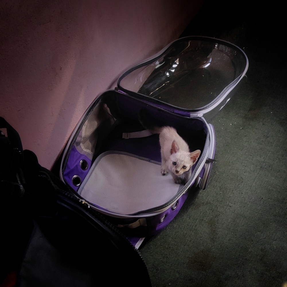 И он готовился к транспортировке в Катманду. Но в день отъезда, котёныш немного доигрался. Переписка из чата с товарищем: