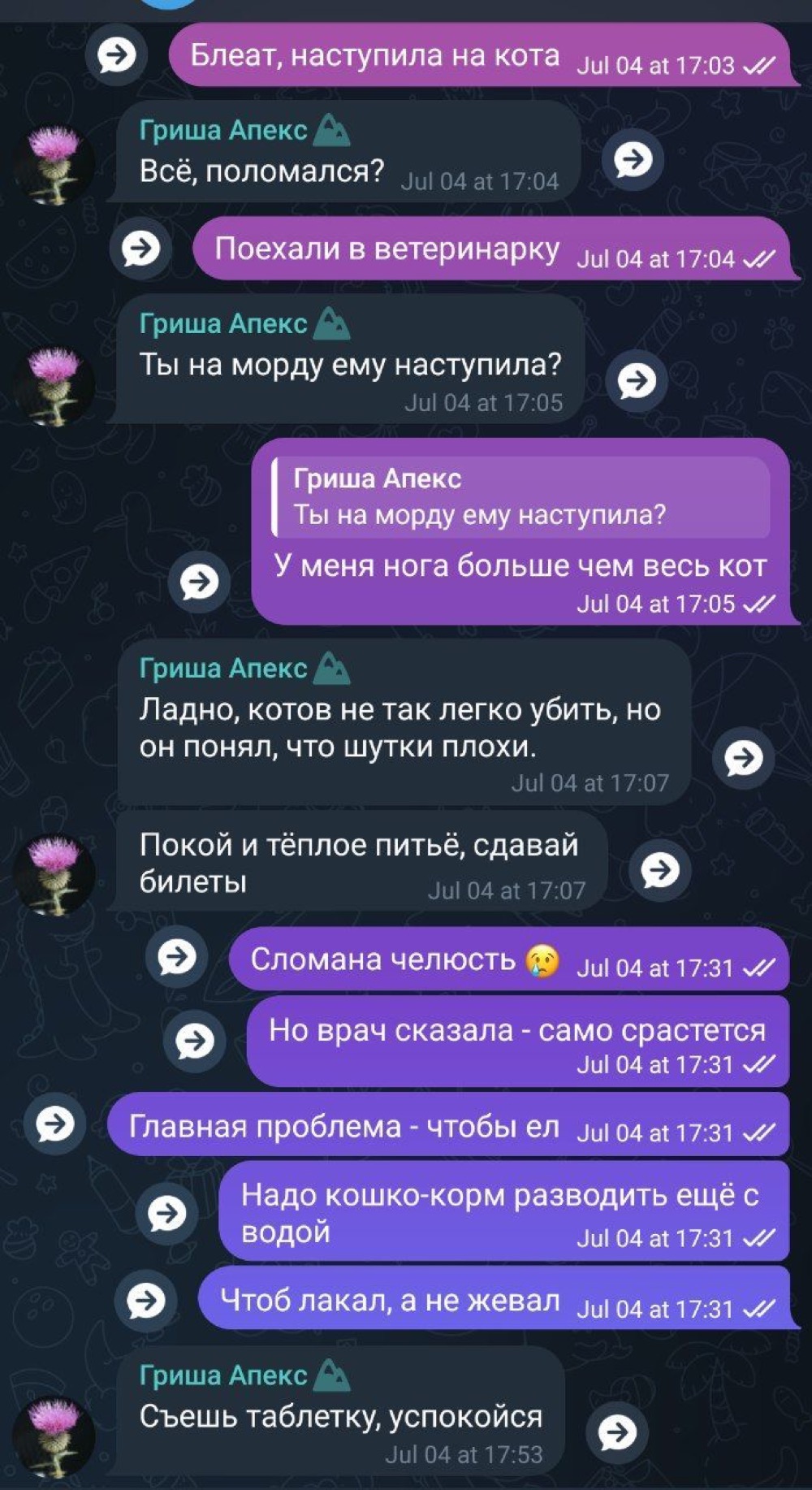 В общем, да, я наступила на кота. Но коту укол сделали через полчаса,