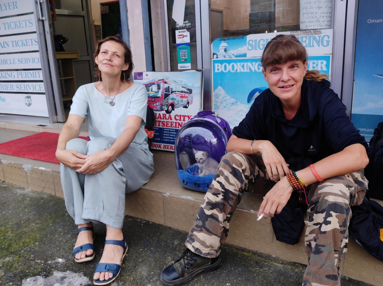 Это мы в ожидании автобуса в Катманду: