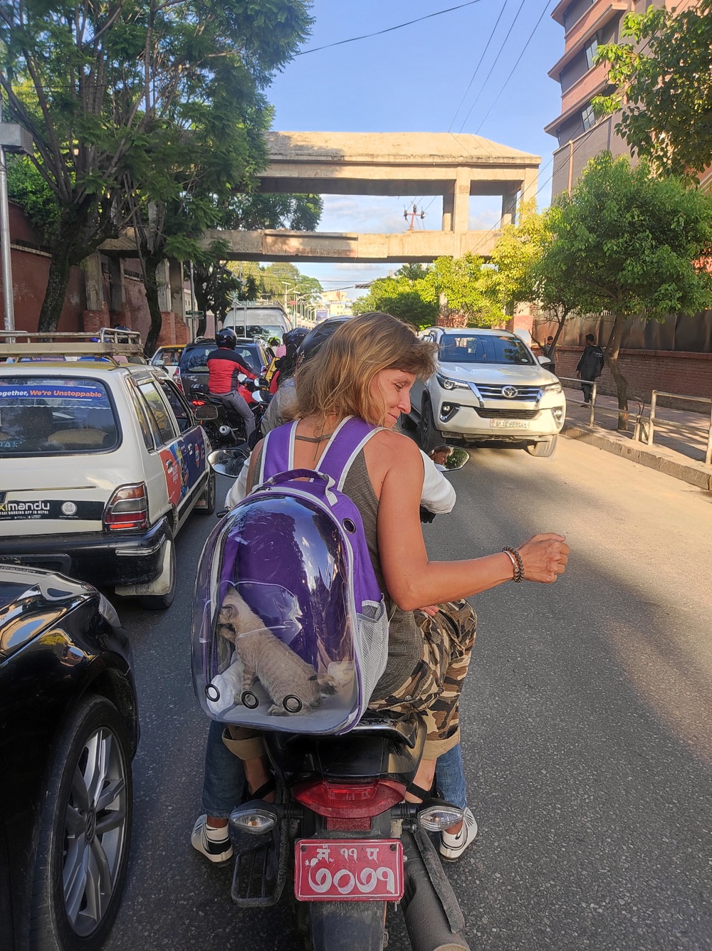 Приехали в Катманду. Везу сдавать животину в новый дом. На светофорах нас фоткают все, мы звезды!:
