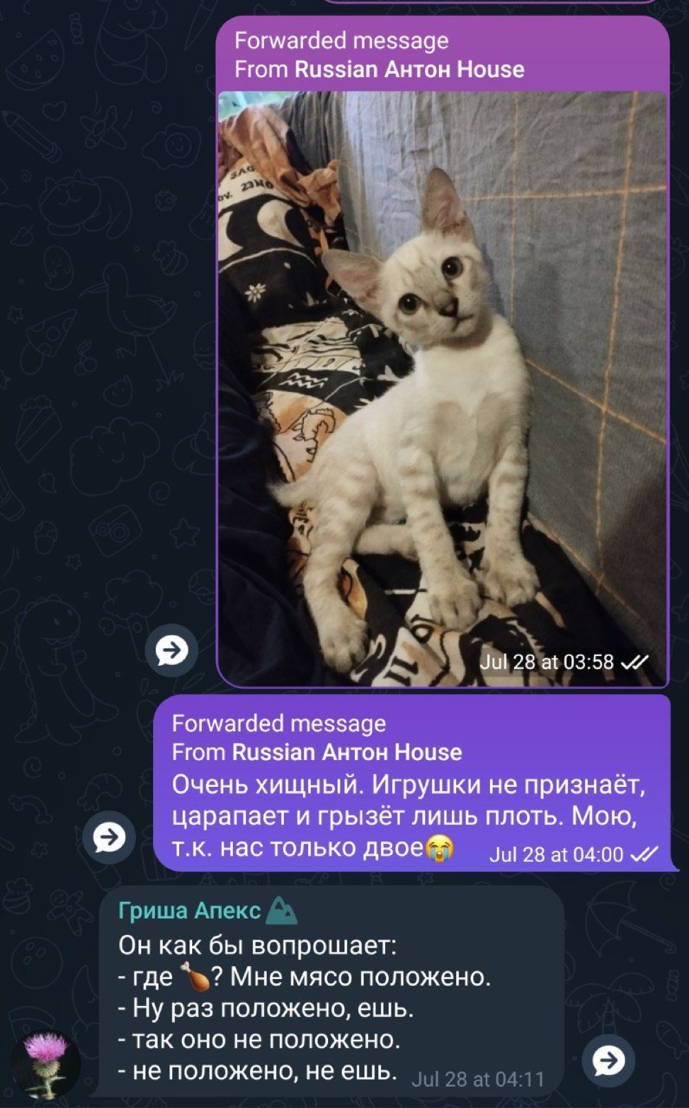 котёныш немного доигрался. Переписка из чата с товарищем: