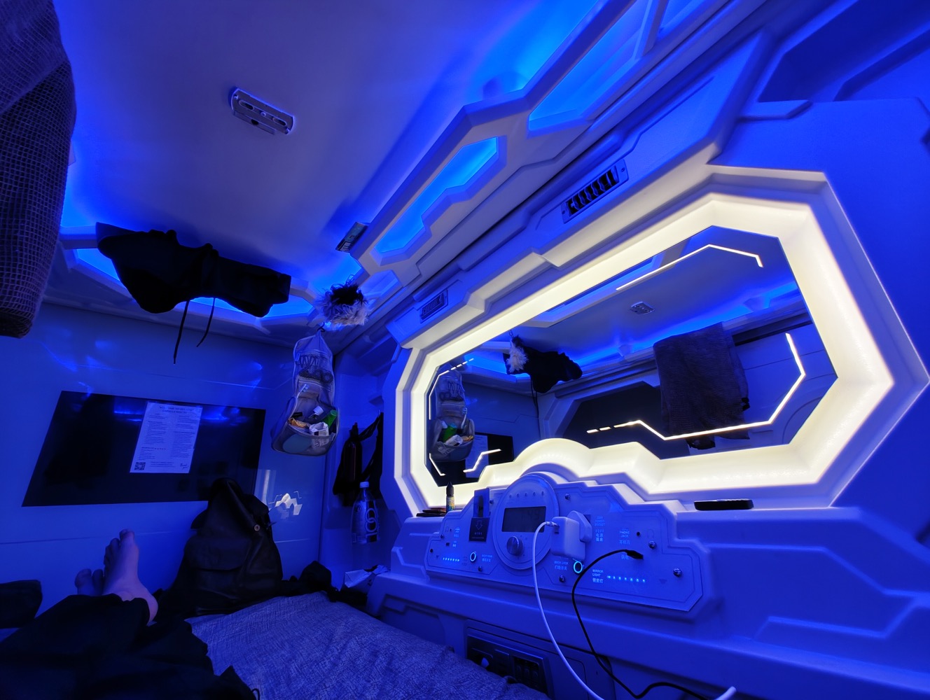 Капсульный хостел. 5$ в день. Естественно горячая вода, кулер,