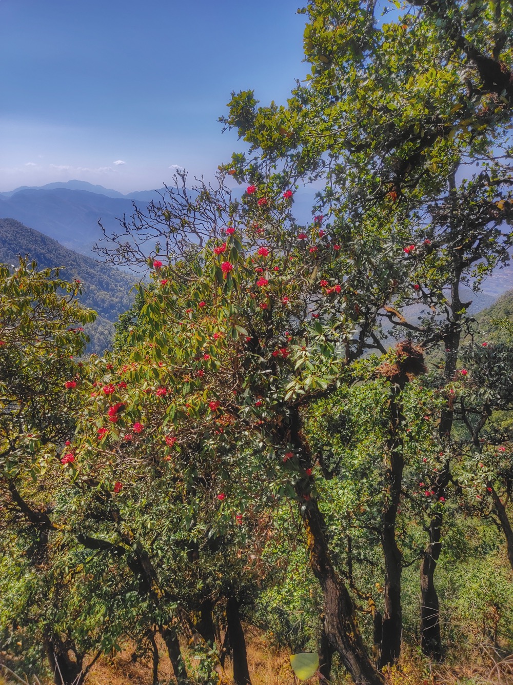 Гора на юге. Надо доехать до деревни Godawari (27.586308, 85.378856) оттуда пешочком на холм. Такси туда не ездят (в смысле на самый верх), но можно на личном транспорте или на джипе местном, которые стоят в начале тропы. Но и пешком хорошо. Тропа иногда выходит на дорогу, но большую часть идет по лесу. Денег за вход не берут. Рододендроны во всю цветут (весной)