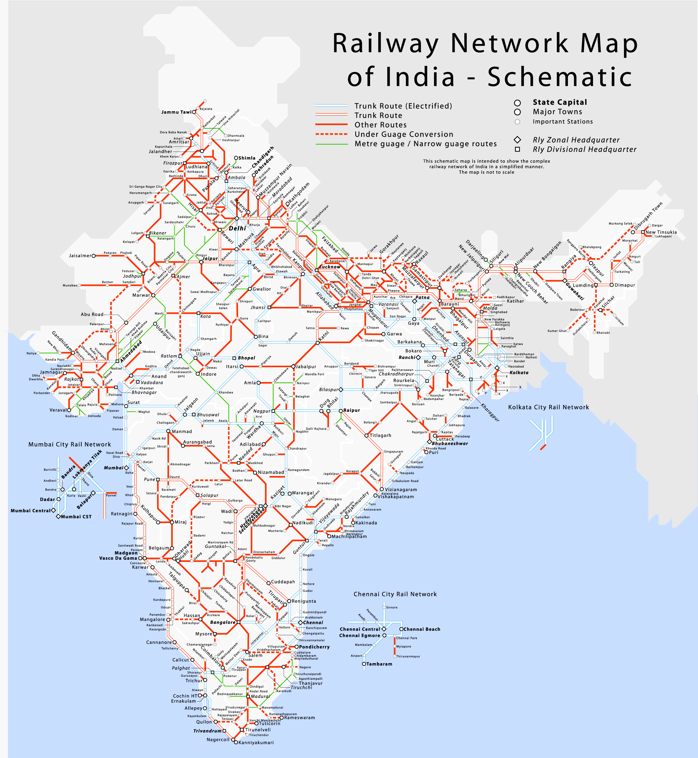 Лучше открыть ее в полном размере в отдельном окне, а еще лучше скачать на телефон и во время перемещения по Индии иметь под рукой. Там очень хорошо видно крупные узловые станции, которые далеко не всегда равны крупным городам. Например, из Гоа в Путтапарти очень легко и быстро добраться через маленький городок Guntakal, о котором мало кто слышал, но поездов там проходит достаточное количество. Если ориентироваться по крупным городам - то надо было бы ехать Маргао - Бангалор и оттуда уже до станции SSPN, что дорогу сильно удлиняет.