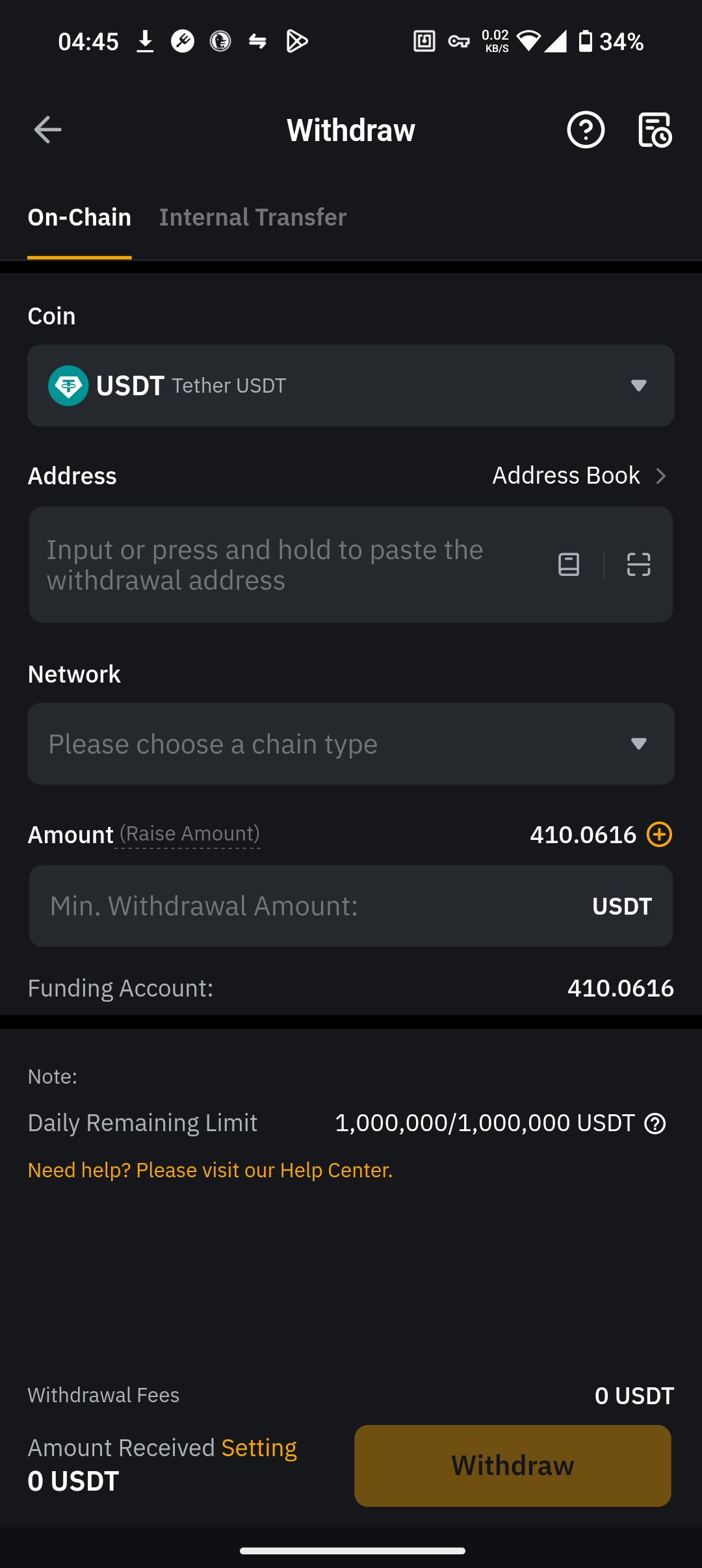 То есть все, что не есть перевод внутри своего кошелька - это Withdraw. Выбираем нужный аккаунт (на ByBit вывод делается с Funding), выбираем что мы выводим, какие монеты, в нашем случае USDT. Следующий выбор: будет ли это перевод внутри ByBit или же это будет вывод куда-то еще (On-Chain).
