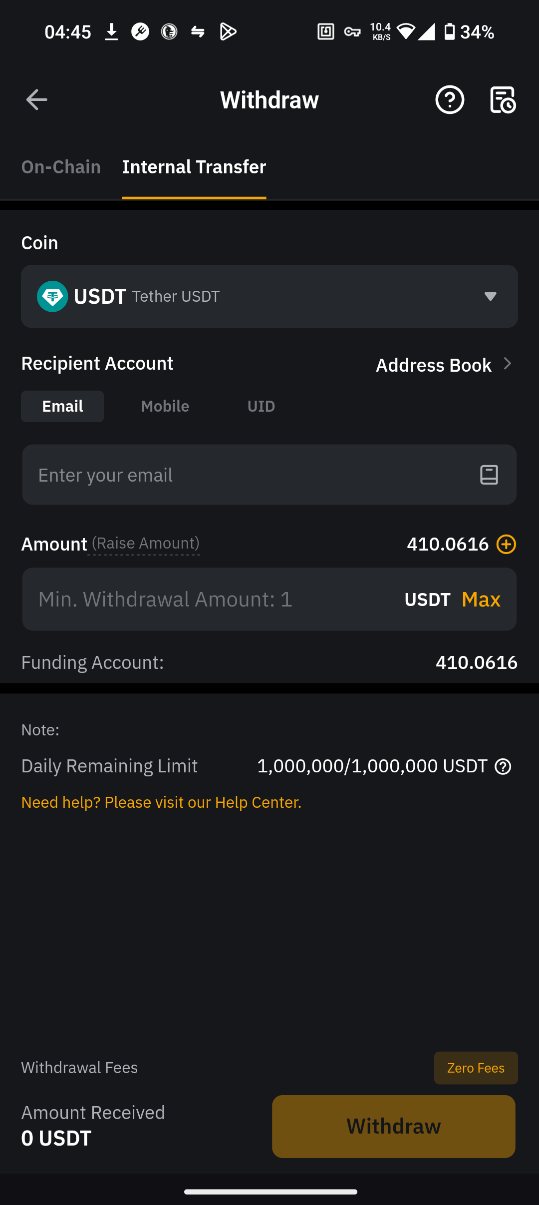 Internal Transfer (перевод другому человеку внутри ByBit):