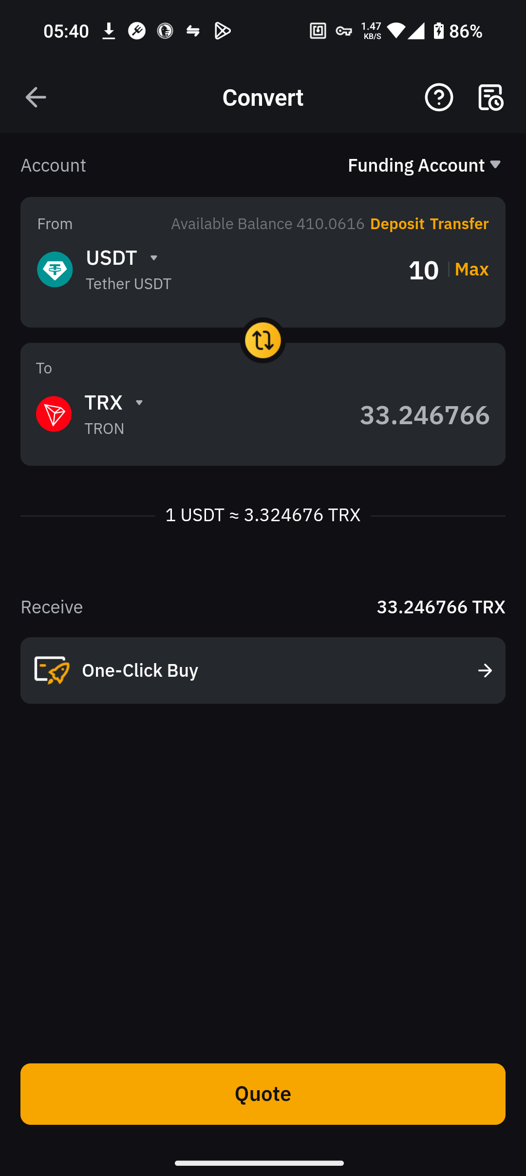 Вводим что у нас есть, что хотим получить, сумму и нажимаем Quote. Появится текущий курс, внутрибиржевой, по которому в течении ближайших 15 секунд биржа готова нам монеты поменять. Соглашаемся. Все TRX у нас на баллансе. Дальше можно их отправить себе на некастодиал, так же как мы выводили USDT. Кстати адрес USDT в сети Tron и адрес монет TRX для одного и того же кошелька один и тот же.