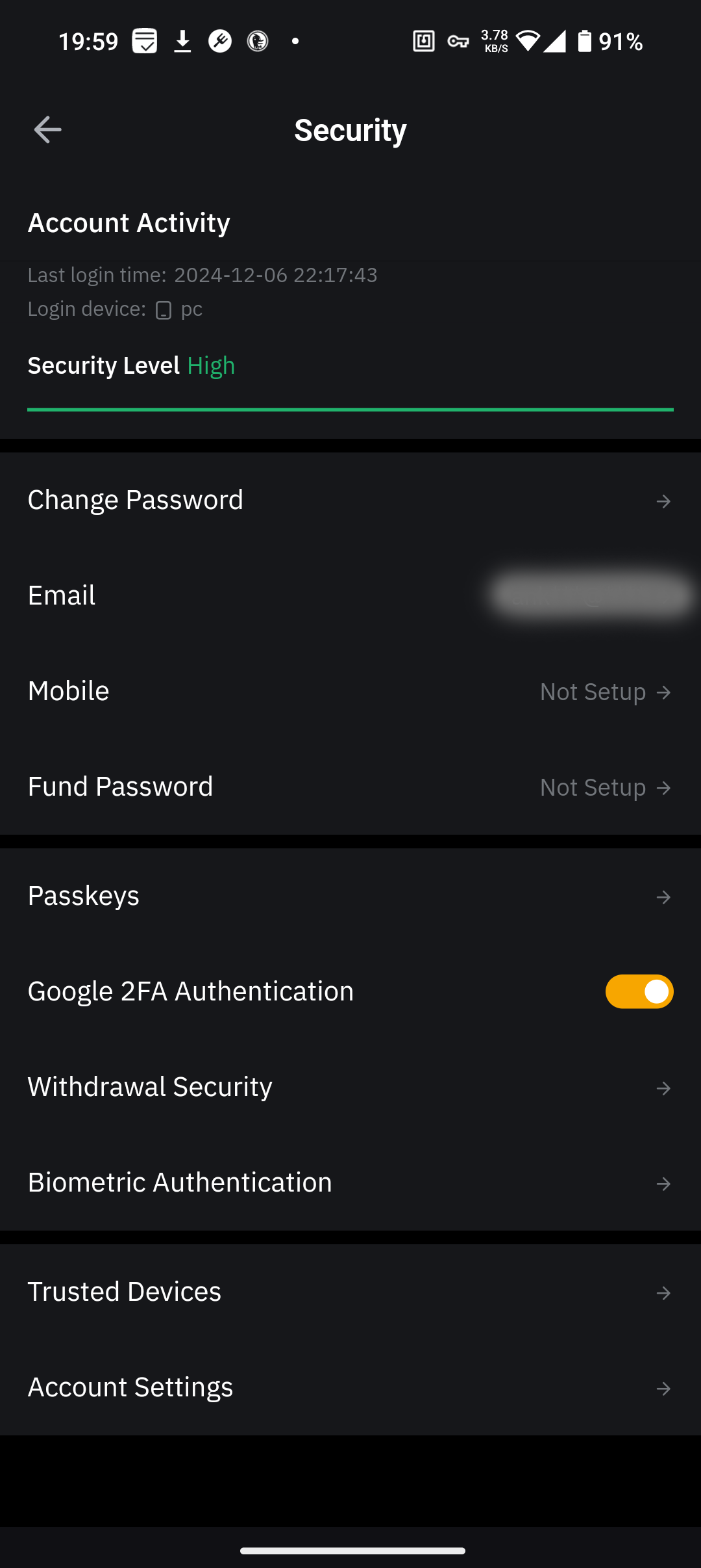 Желательно установить 2FA. Я не пользуюсь гуглом. Да, это удобно, но ровно до того момента, когда войти в аккаунт почему-то не получается: толи из-за смены локации, толи из-за смены самого аппарата. Гугл по-любому привязывается на сим-карту, так что если она не работает - то все. Есть много сторонних аутентификаторов, у меня стоит Aegis. Но надо понимать, что все бекапы в нем - на вашей совести. Никто не может ограничить доступ к нему, но если вы потеряли пароль или не сделали бекап - его не восстановить. Сбросить тоже можно (вообще все можно сбросить, даже KYC), но опять таки - результат: заморозка вывода на 24 часа.