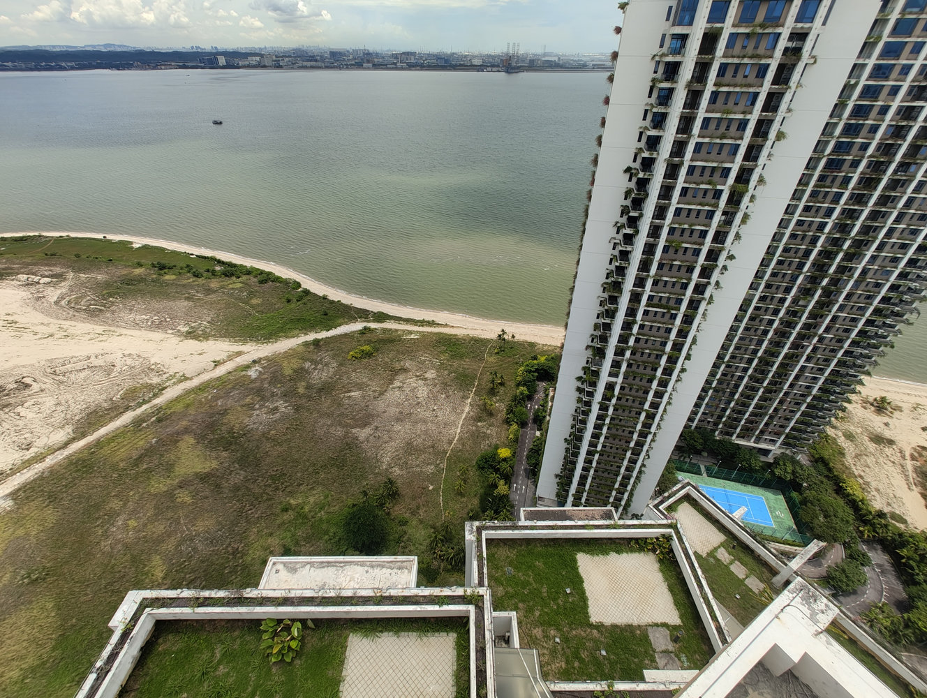 А тут ещё и экология подкачала. С разных сторон. Во-первых, в этом районе какие-то супер природоохранные мангровые заросли и крупнейшие в Малайзии луга морской травы, на которые наплевали, насыпав этот остров. Причём начали насыпать в 2014 году без обязательной детальной экологической экспертизы. Стало меньше рыбы, откуда-то повылезали крокодилы. Сингапур выразил озабоченность: мол, что вообще происходит и почему нас не спросили, как того требует договор от 2005 года. Во-вторых, насыпали всё очень быстро, не дав земле "улечься" или как это сказать. В общем... земля ползёт обратно в воду. Говорят, где-то в здании треснула стена (я не видела). А вот трещины в асфальте — видела. Как после землетрясения, широкие такие.