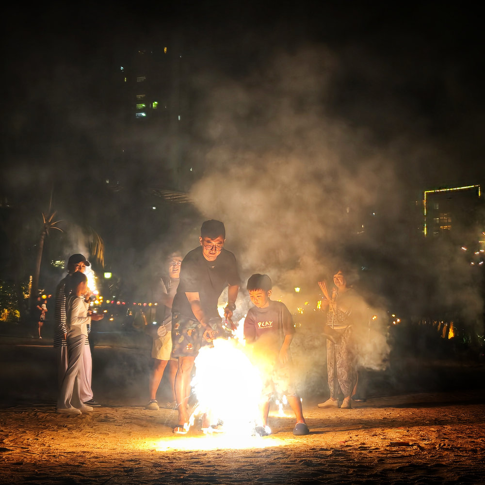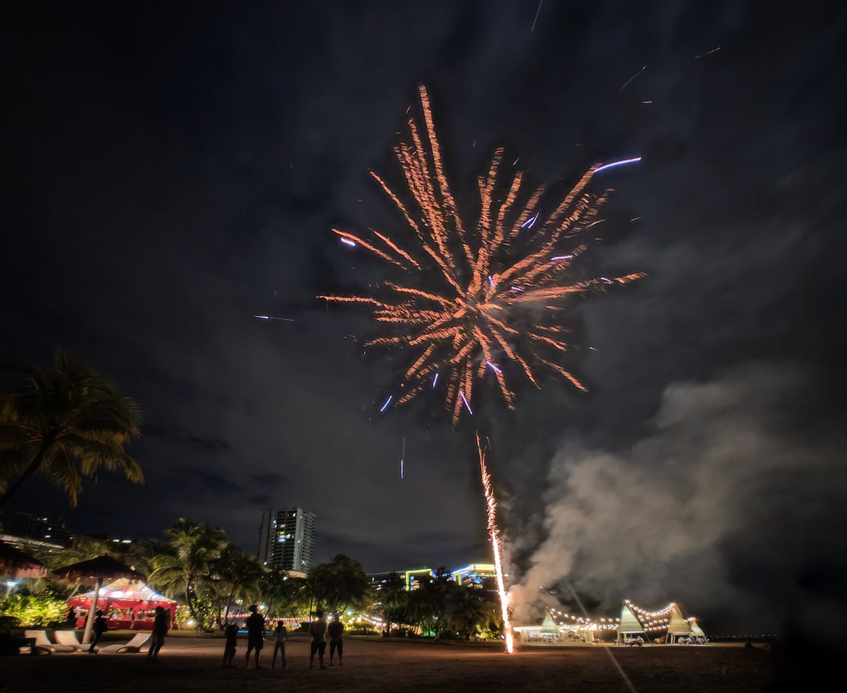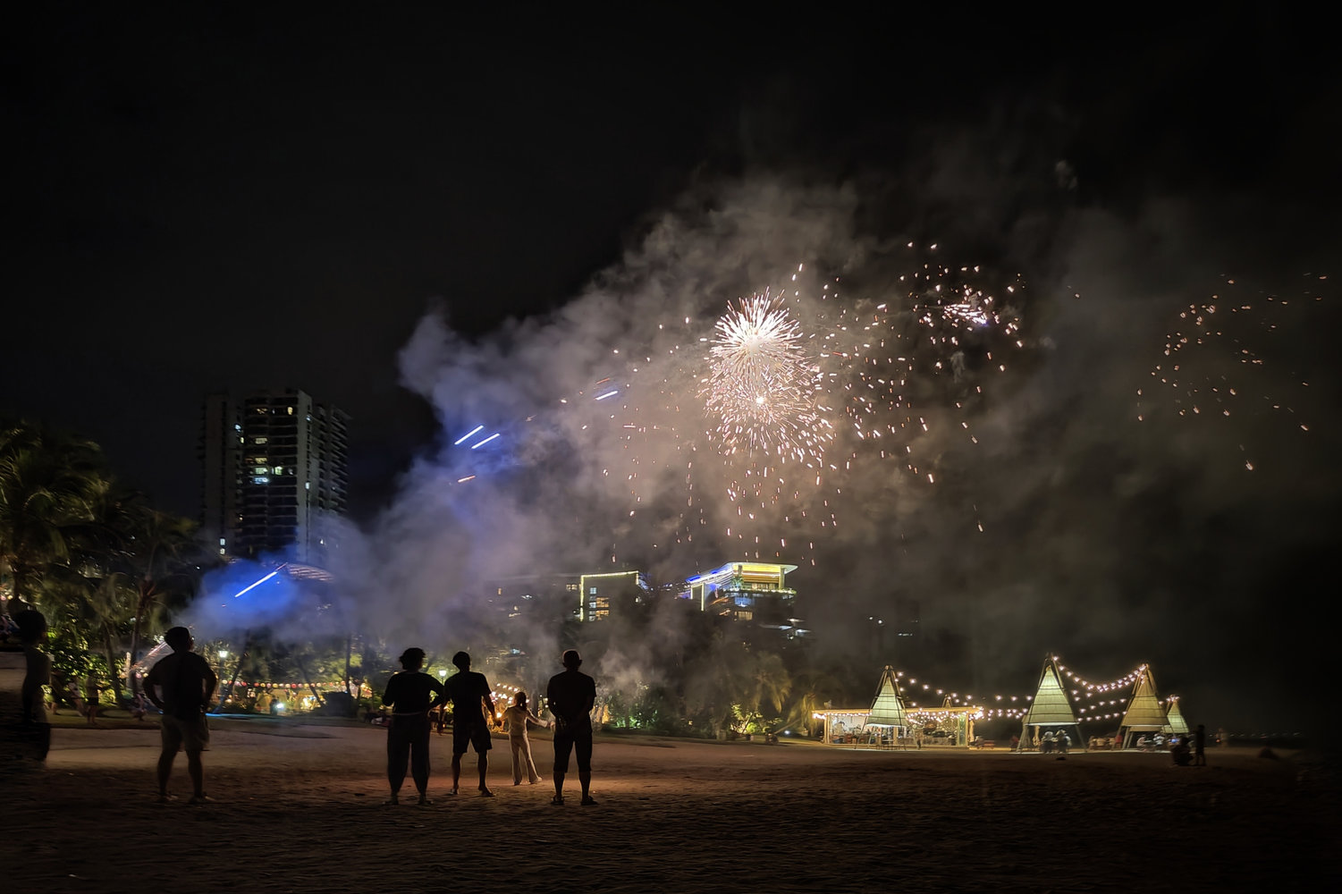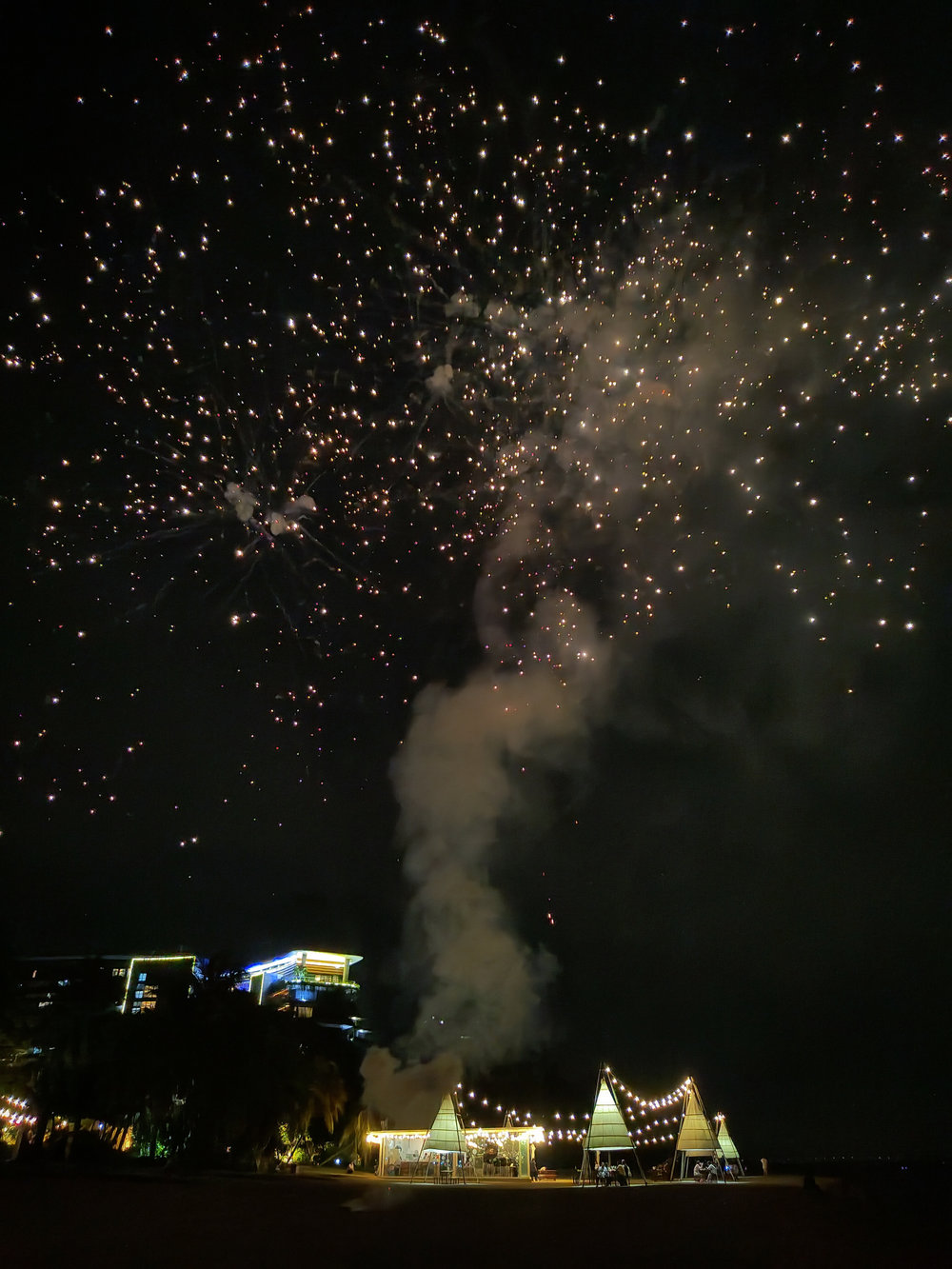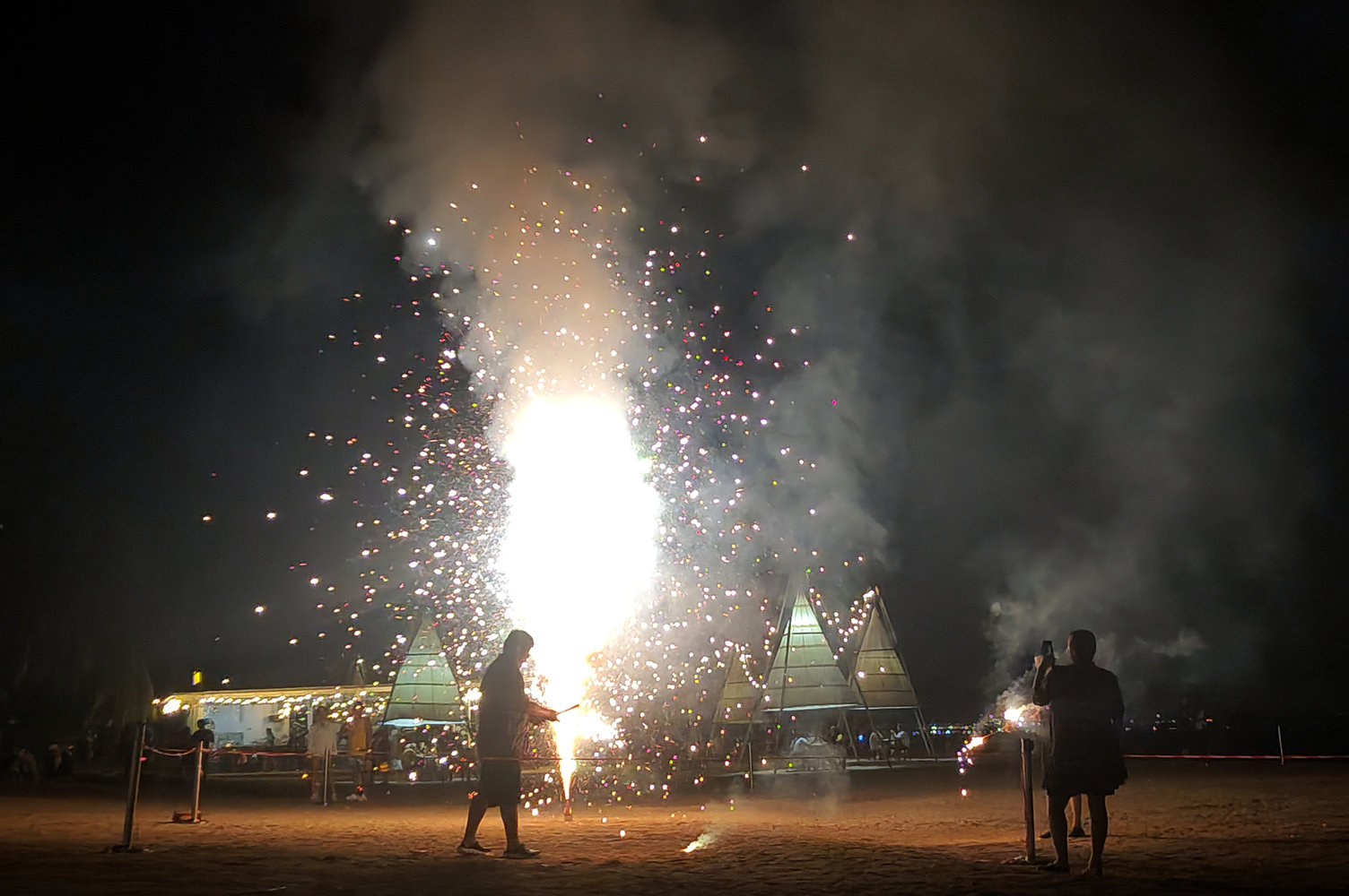 По выходным на пляже работает палатка феерверков. Можно купить и сразу бабахнуть. Ну или смотреть как бабахают другие:
