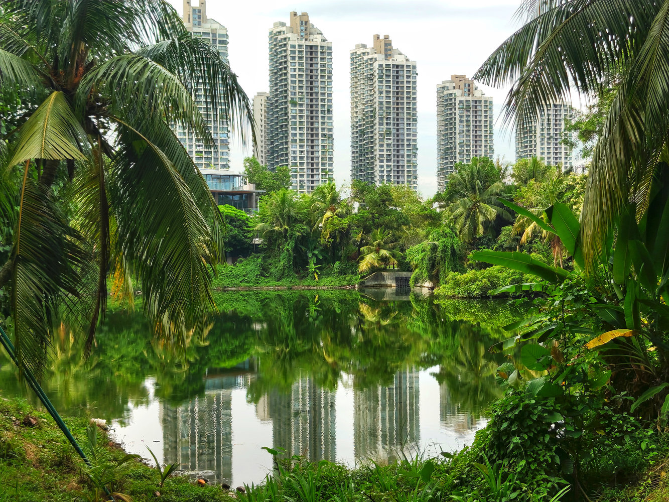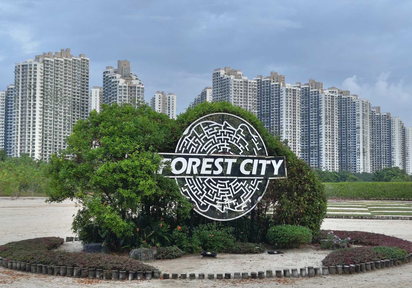 Город-сад из небоскрёбов на искусственном острове. Супер-экологичный, зелёный. Официальный сайт: forestcitysfz.com. Но там все очень радужно. Еще одна страница, гораздо более честная и информативная: futuresoutheastasia.com