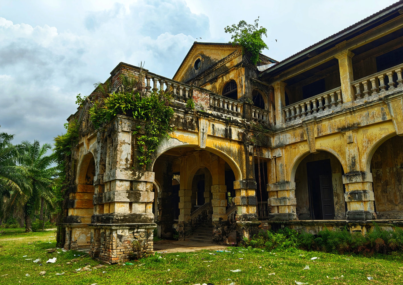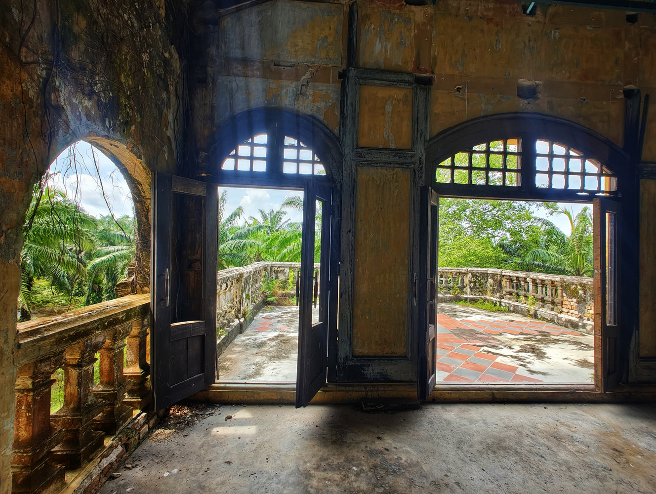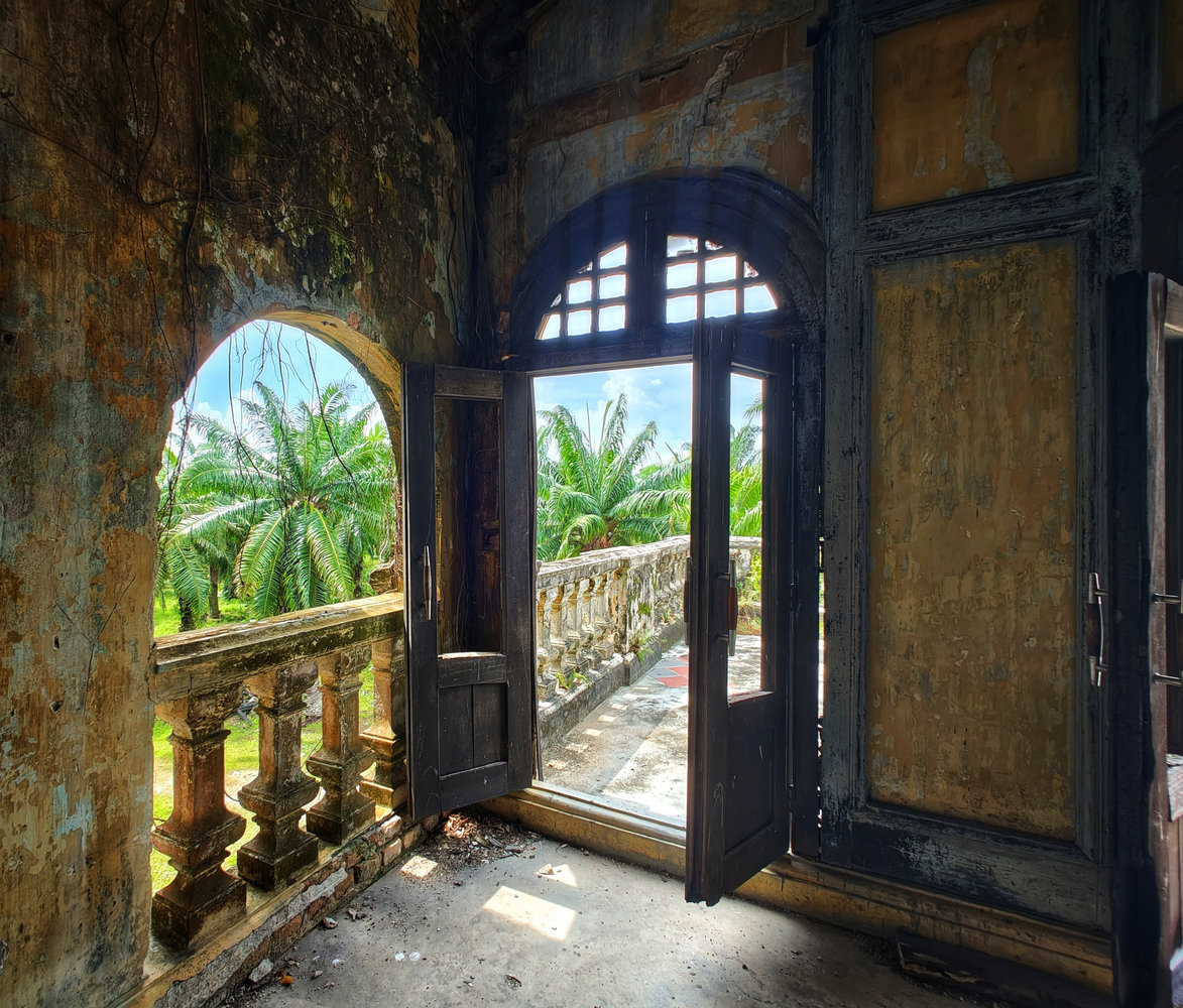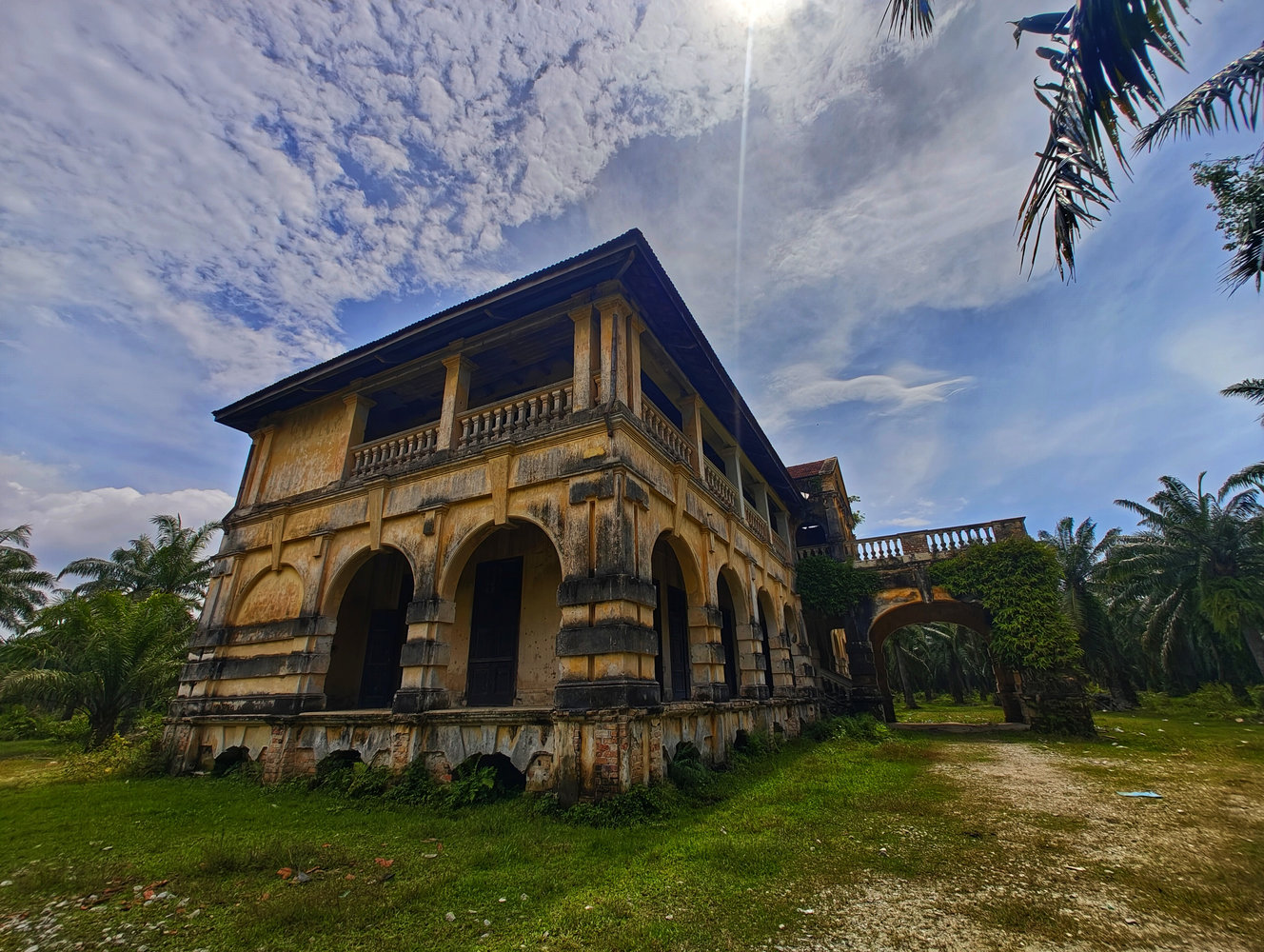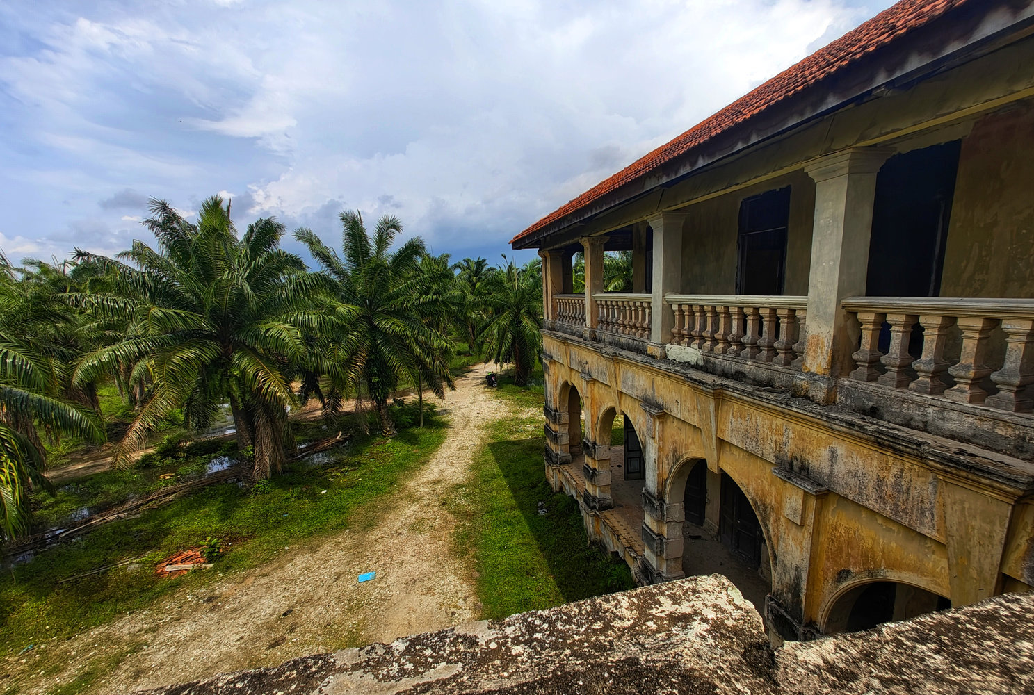 Шикарная колониальная вилла посереди пальмовых плантаций. При том, что скорее всего плантации появились намного позже нее.