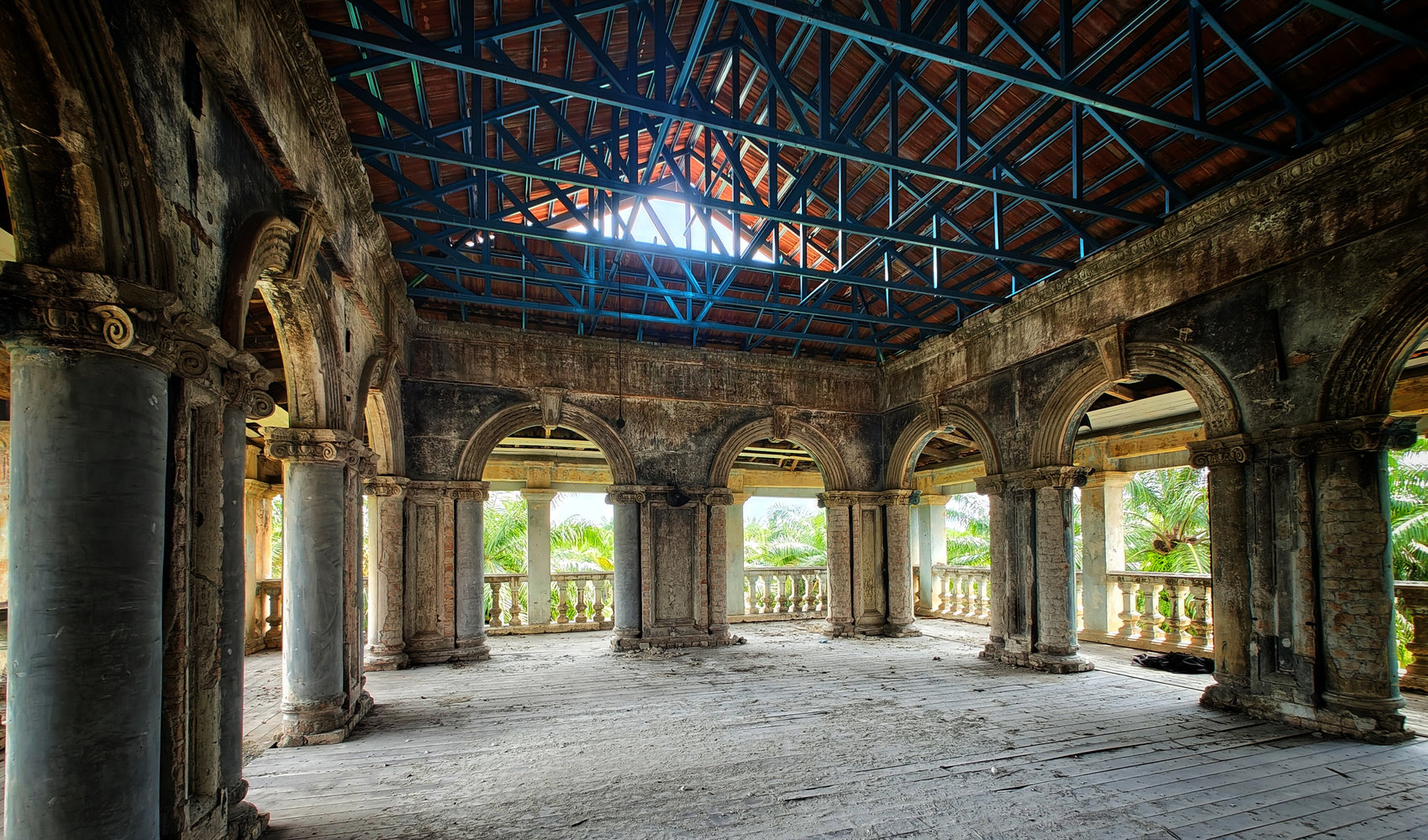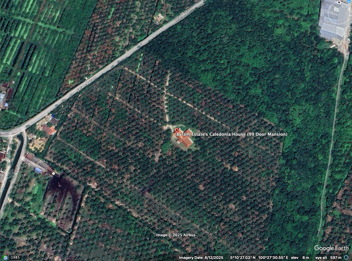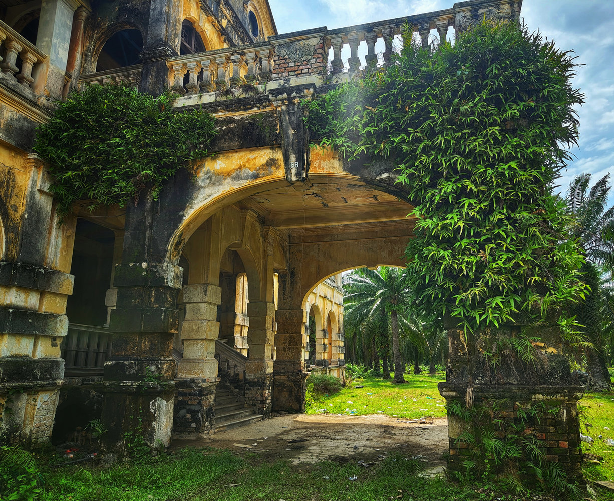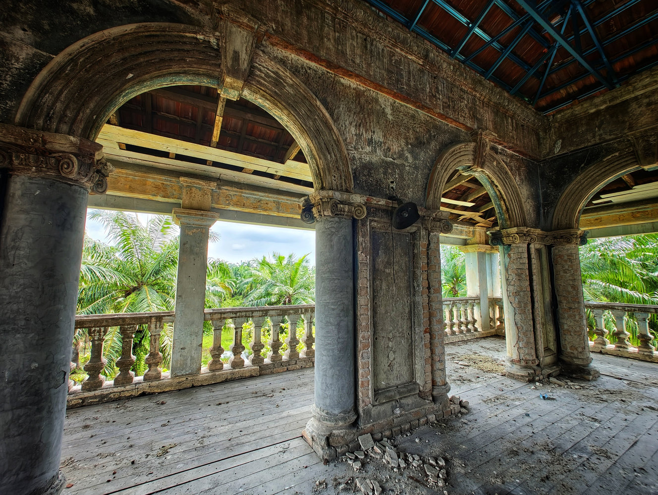 Шикарная колониальная вилла посереди пальмовых плантаций. При том, что скорее всего плантации появились намного позже нее.