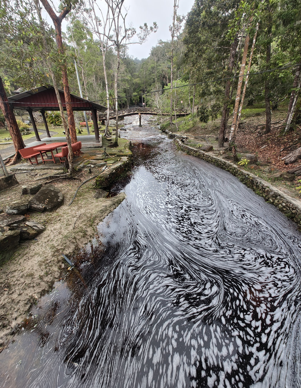 Вода - это не мыло или стиральный порошок. Там чуть выше водопад и это он такую красоту рисует.
