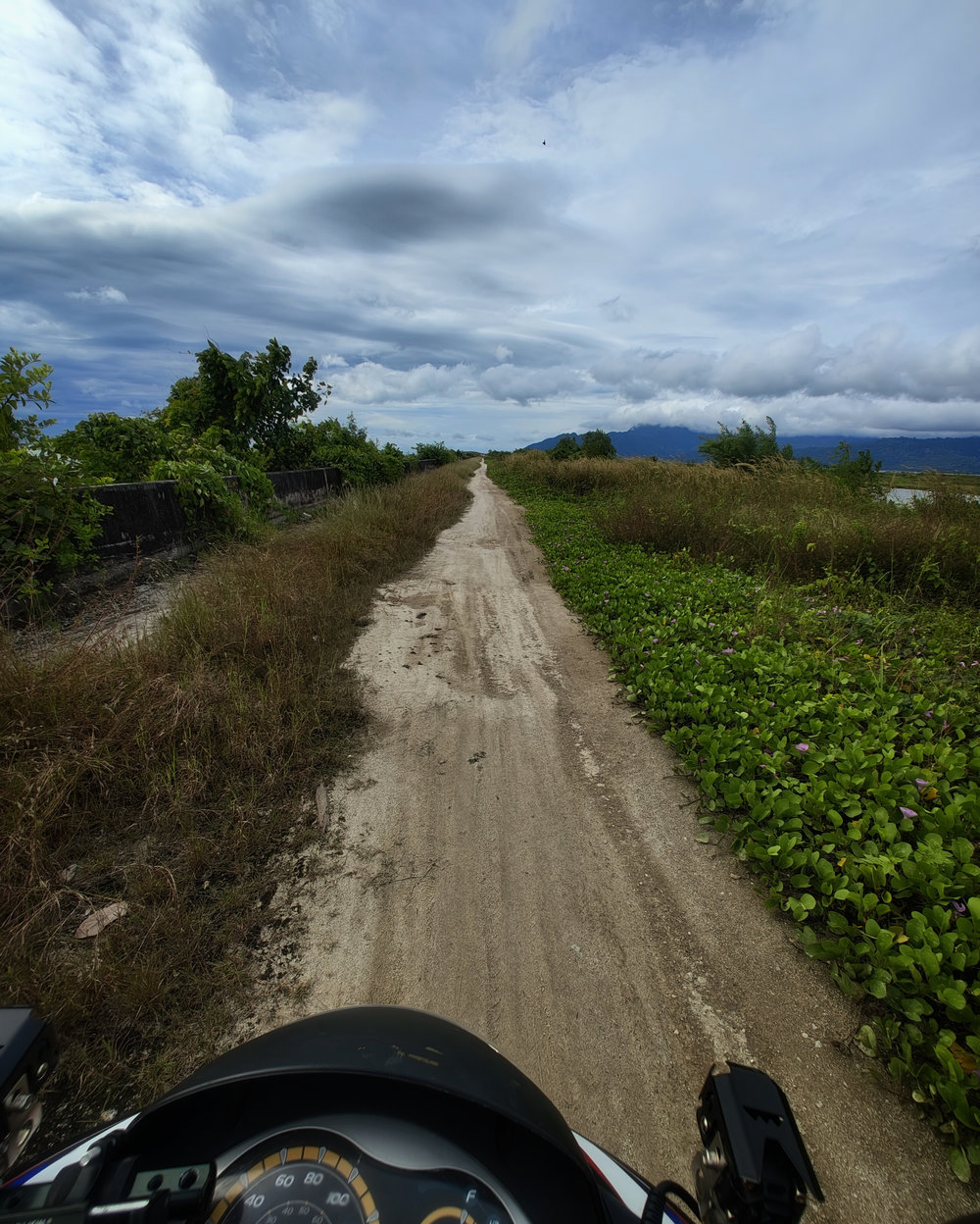 С южной стороны заехать на дамбу можно было бы почти до конца, если бы не великой глубины лужи. Я что-то зассала на карбюраторном байке. Это же вроде он может словить гидроудар и на том его жизнь может закончится (либо потребовать больших вложений в реанимацию)