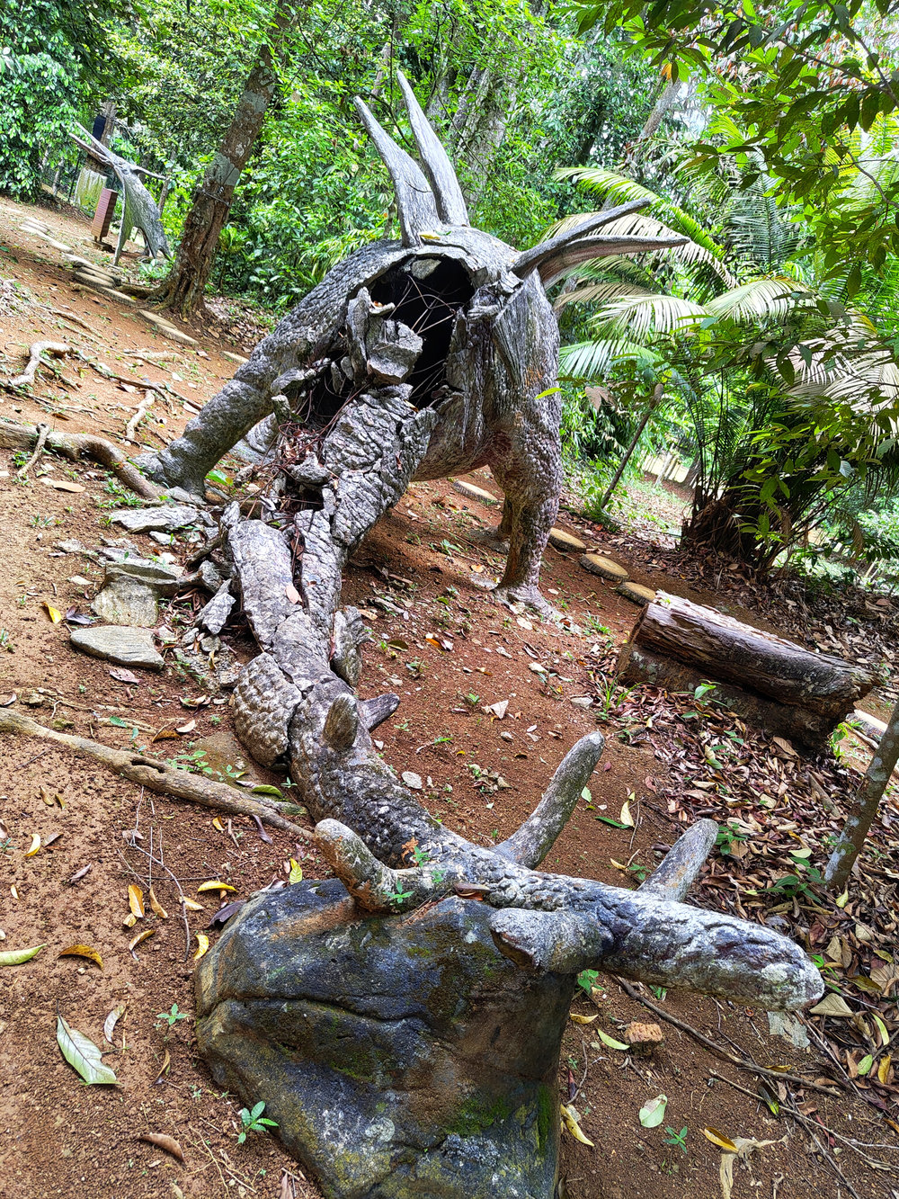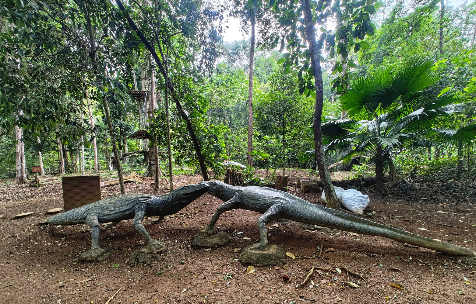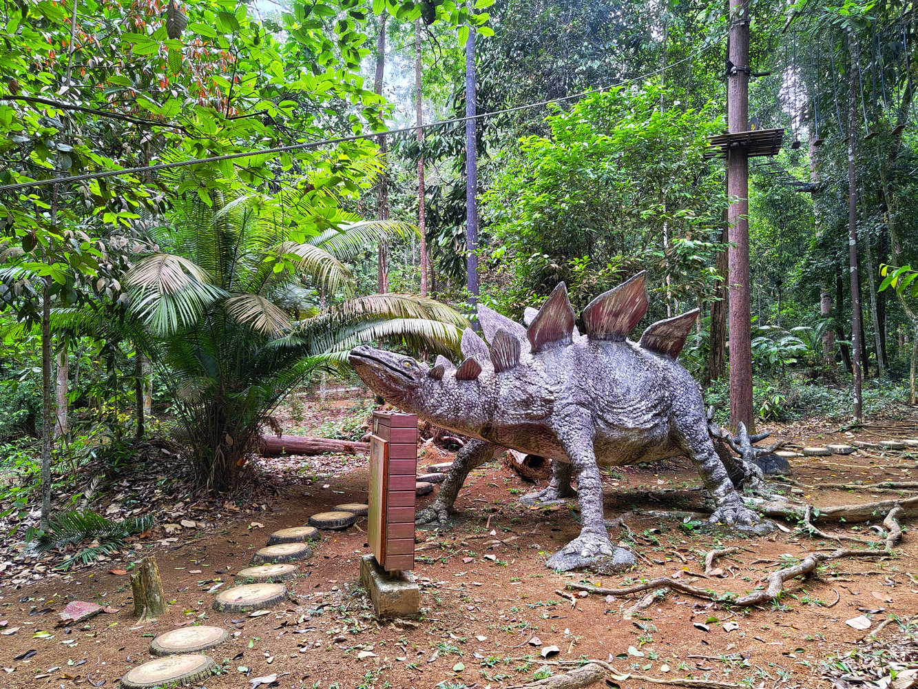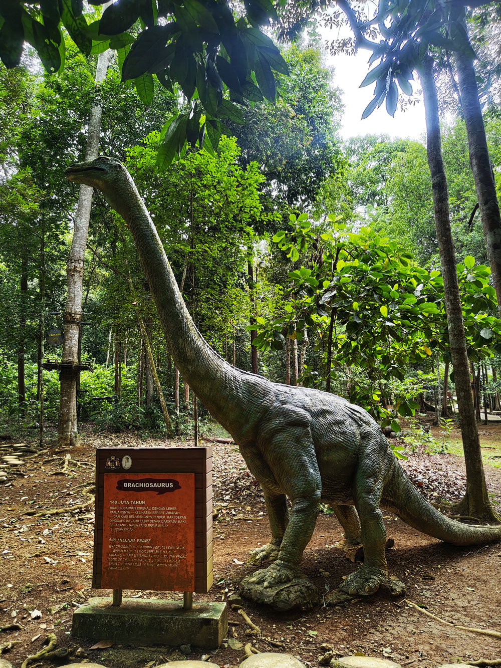 В конце туннеля был светв конце парка была вполне рабочая контора, которая была готова в обмен на некую сумму рингитов выдать оборудование покататься:И там же, среди джунглей, коллекция всяких диплодоков и других вымерших существ, отлитых в бетоне: