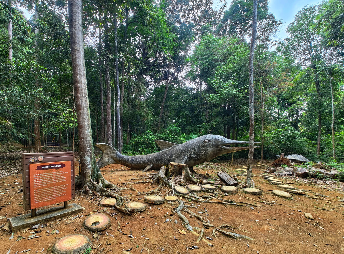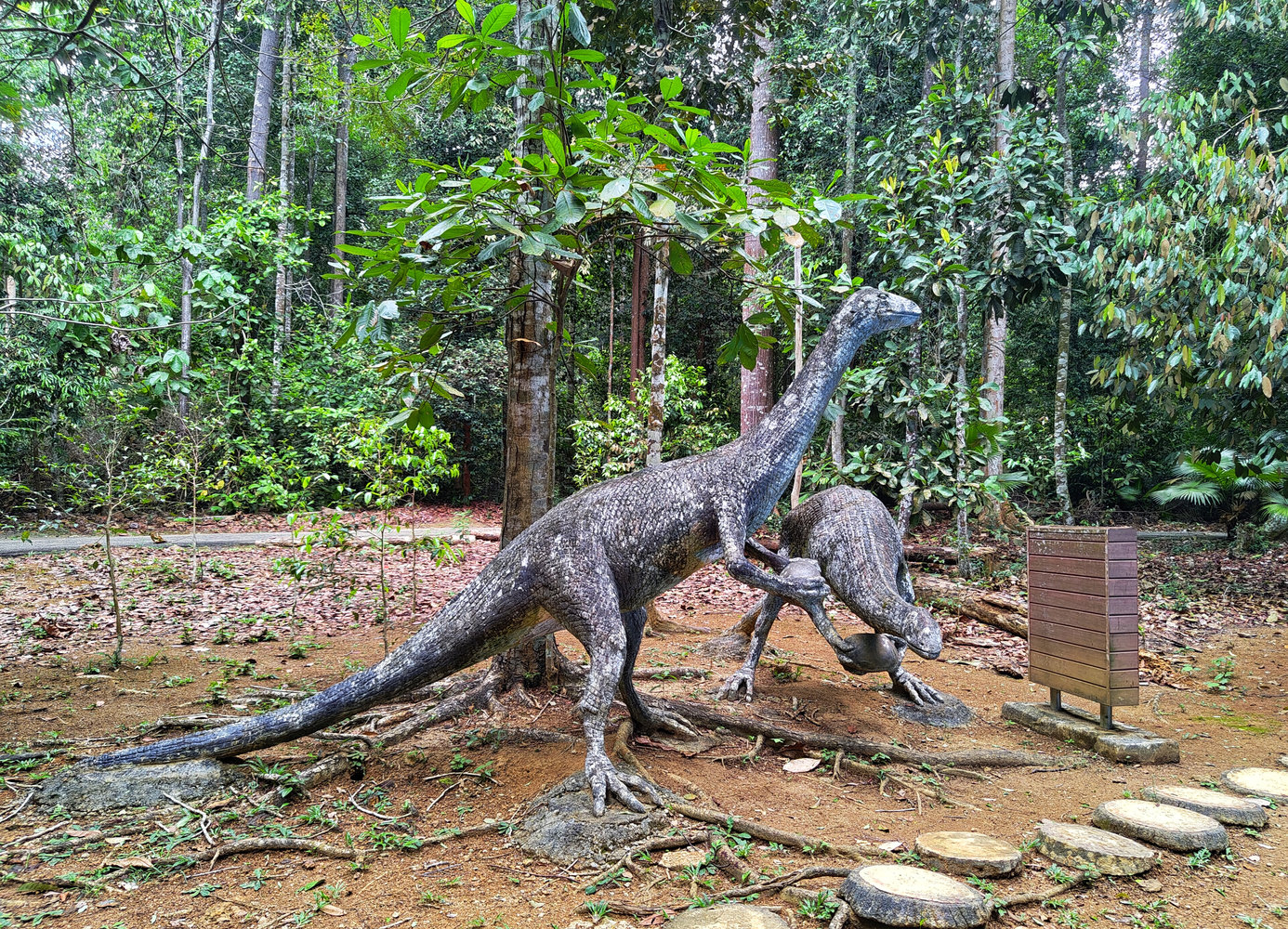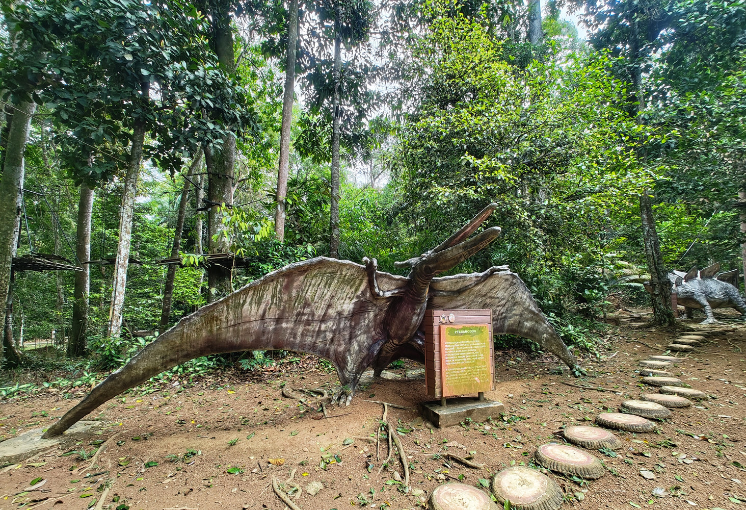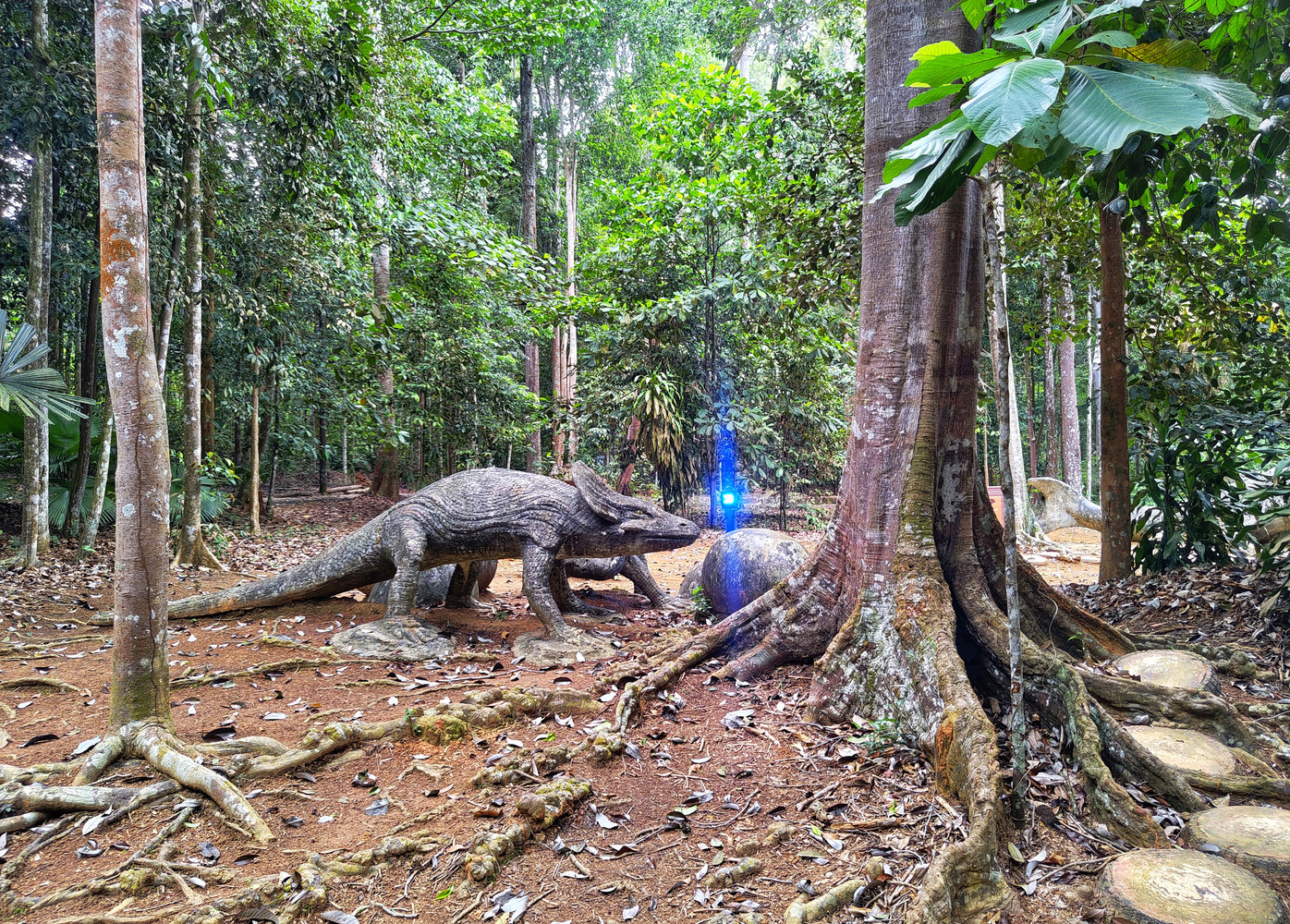 В конце туннеля был светв конце парка была вполне рабочая контора, которая была готова в обмен на некую сумму рингитов выдать оборудование покататься:И там же, среди джунглей, коллекция всяких диплодоков и других вымерших существ, отлитых в бетоне: