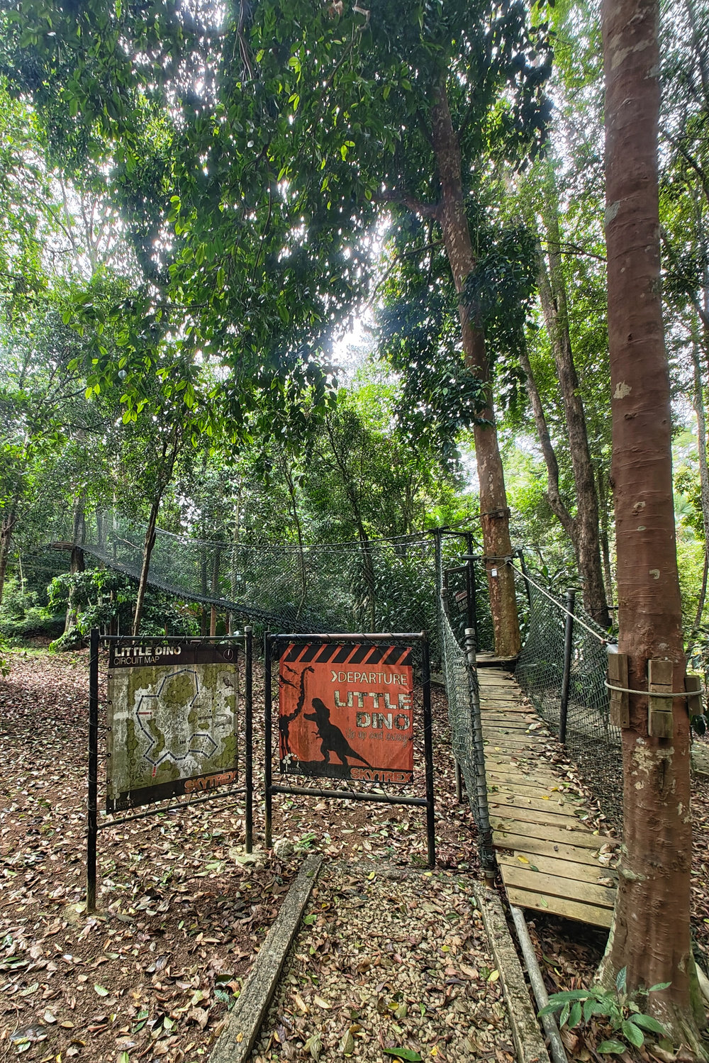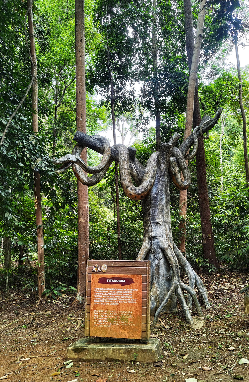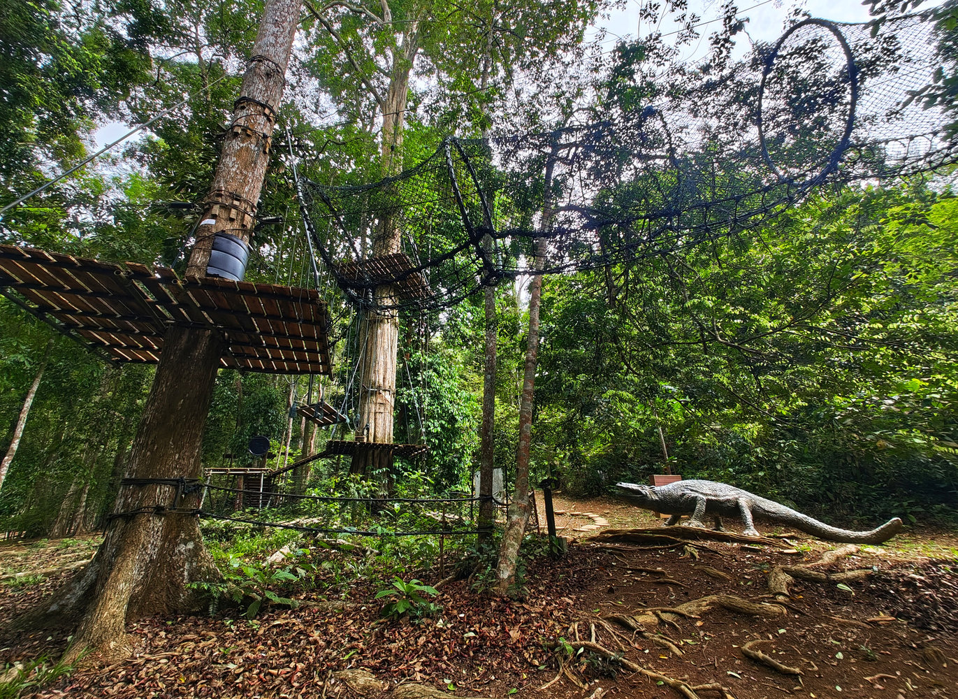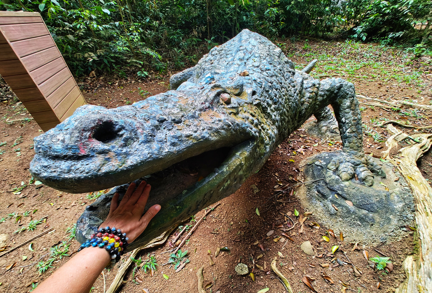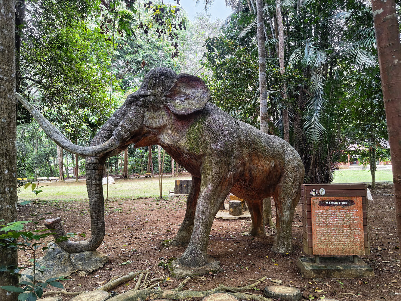 В конце туннеля был светв конце парка была вполне рабочая контора, которая была готова в обмен на некую сумму рингитов выдать оборудование покататься:И там же, среди джунглей, коллекция всяких диплодоков и других вымерших существ, отлитых в бетоне: