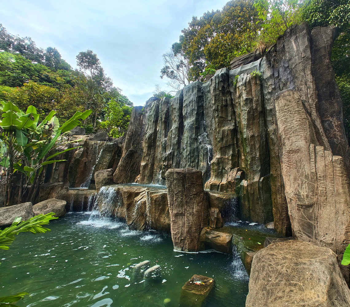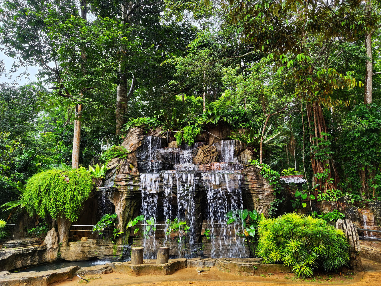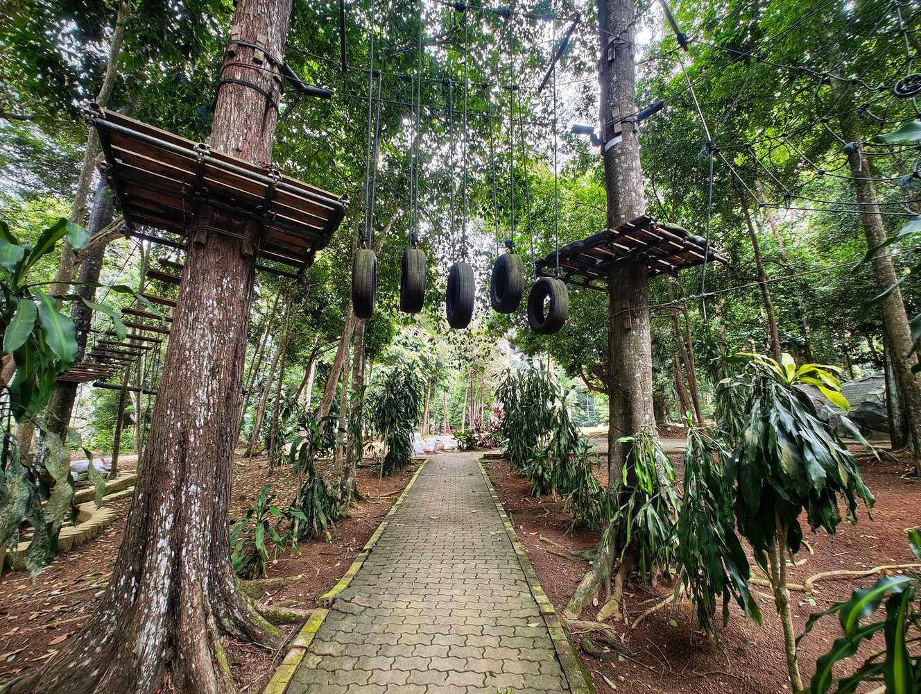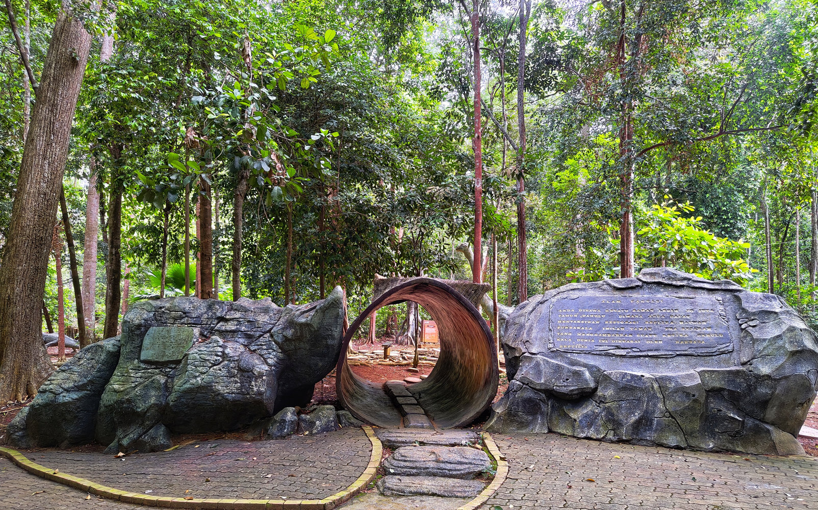 В конце туннеля был светв конце парка была вполне рабочая контора, которая была готова в обмен на некую сумму рингитов выдать оборудование покататься:И там же, среди джунглей, коллекция всяких диплодоков и других вымерших существ, отлитых в бетоне: