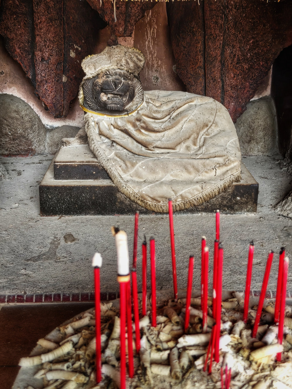 А второй - тигр под алтарем. Вначале я думала, что это котик, но потом мне приподняли его одежи и показали полоски. По-китайски этого зверя зовут Fu-E: