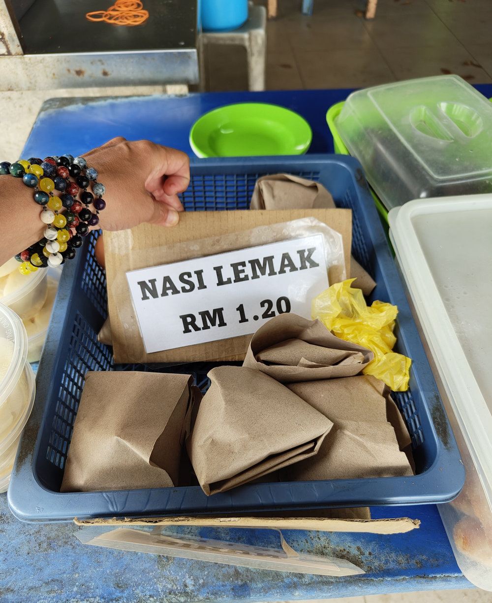 Рядом с конячьим теплом нашелся варунг, с самым дешевым, встреченным мной на данный момент Nasi Lemak. Кокосом пахнет, четвертинка яичка, самбал и несколько сущеных рыбок присутствуют. Так что засчитано: