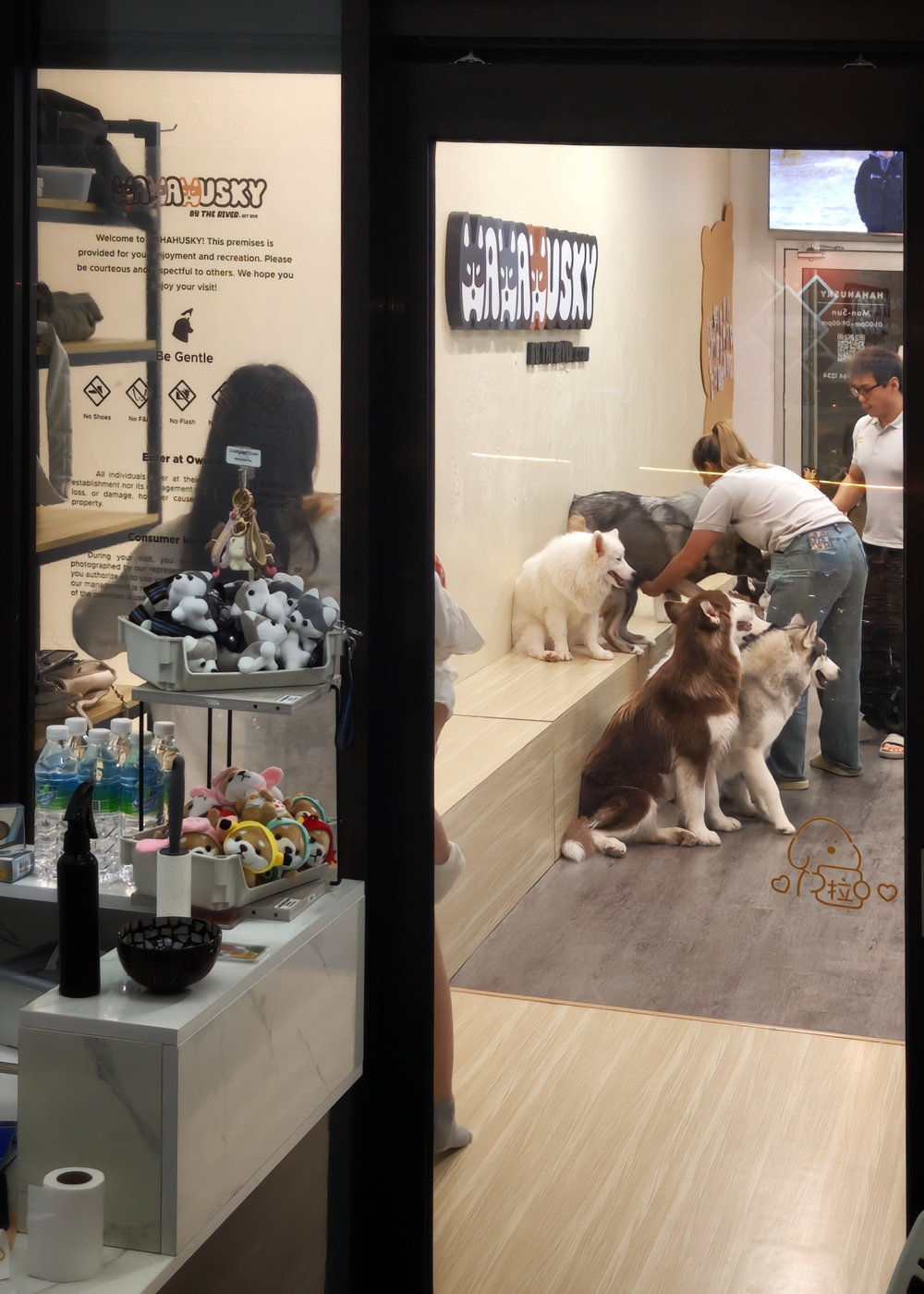 Хаски-кафе тут. Можно немного поподглядывать в окно: