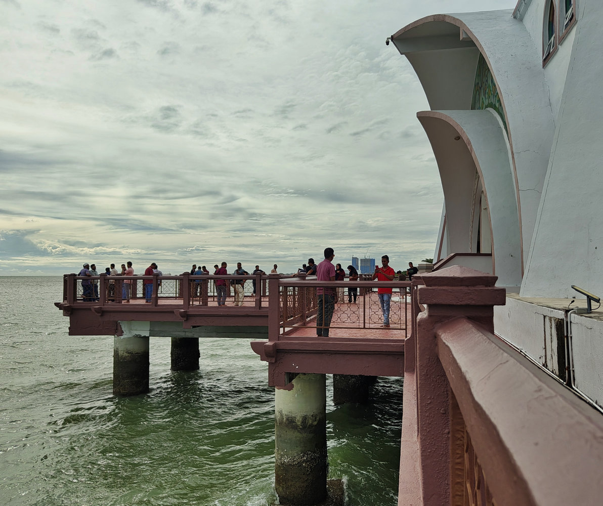 Мечеть на сваях. Красивая, но я ожидала таки внутри чего-то более забористого. Неверным вход разрешен в длинной одёже, с покрытой головой и шеей: