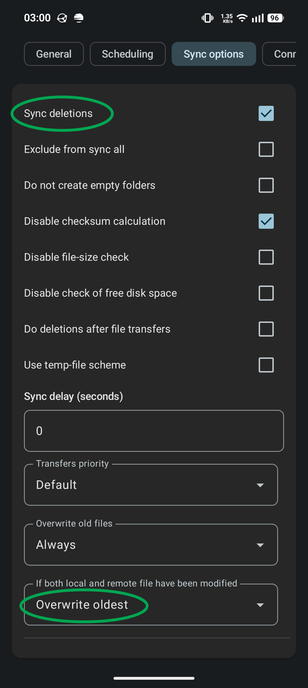 Sync deletions, как бы программа не пугала вас словами Use with extreme care. Иначе можно просто потонуть в потоке копий и копий от копий. В любом случае, от случайного удаления защищает корзина и восстановив файл оттуда - он же восстановится и обратно в облаке.If both local and remote file have been modified- ситуация довольно редкая, но не совсем невозможная. В случае каких-то музыкальных или видеофайлов можно забить и оставить либоSkip file, либоAssume files are identical. Но, например, с файлами автоматических бекапов нужно твердой рукой поставитьOverwrite oldestи никак иначе.Я ставлю все галочки, чтобы быть в курсе что там опять сломалось (или же не сломалось ничего)