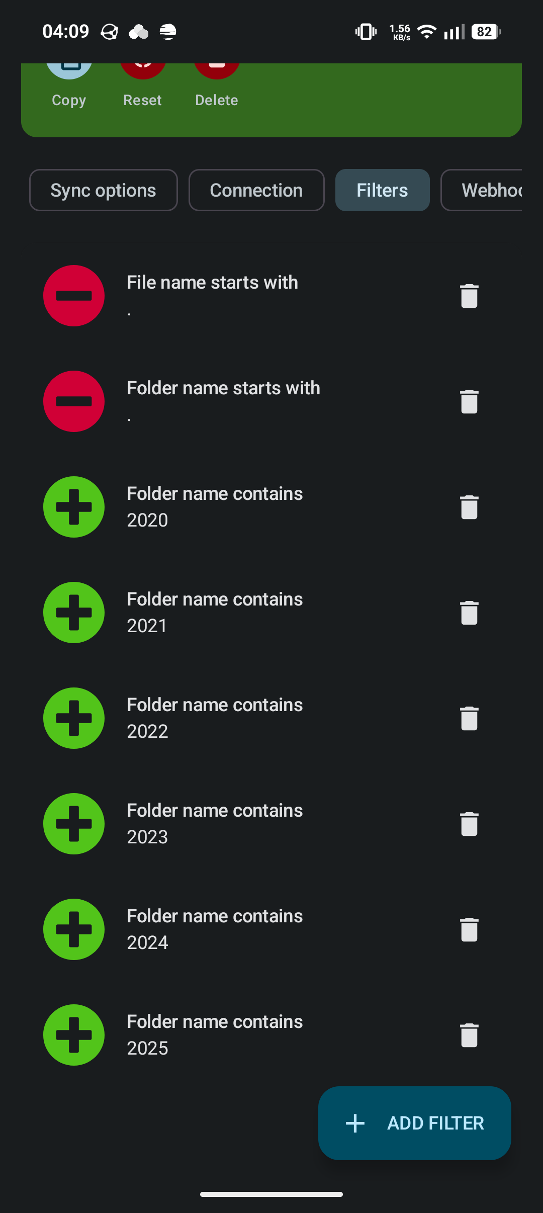 К использованию удобнее конечно же вариант на телефоне. Поэтому оставляем его как есть, а в фильтрах FolderSync прописываем следующее (на примере папки ./myPhoto 2020-2025):